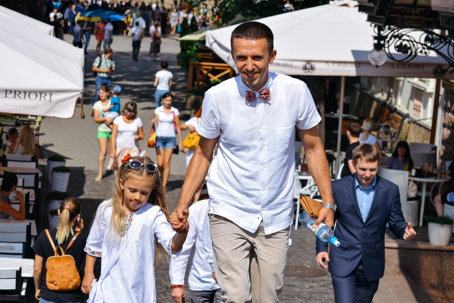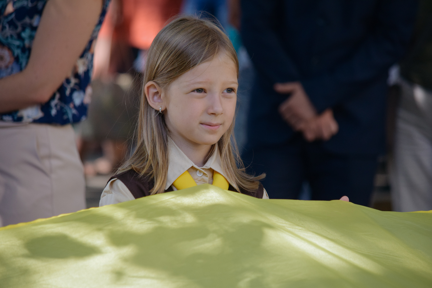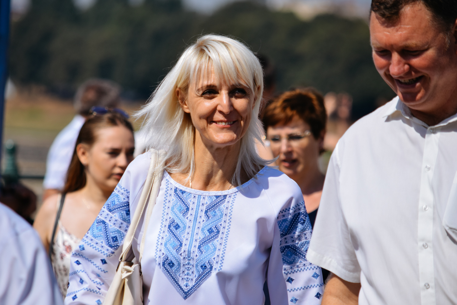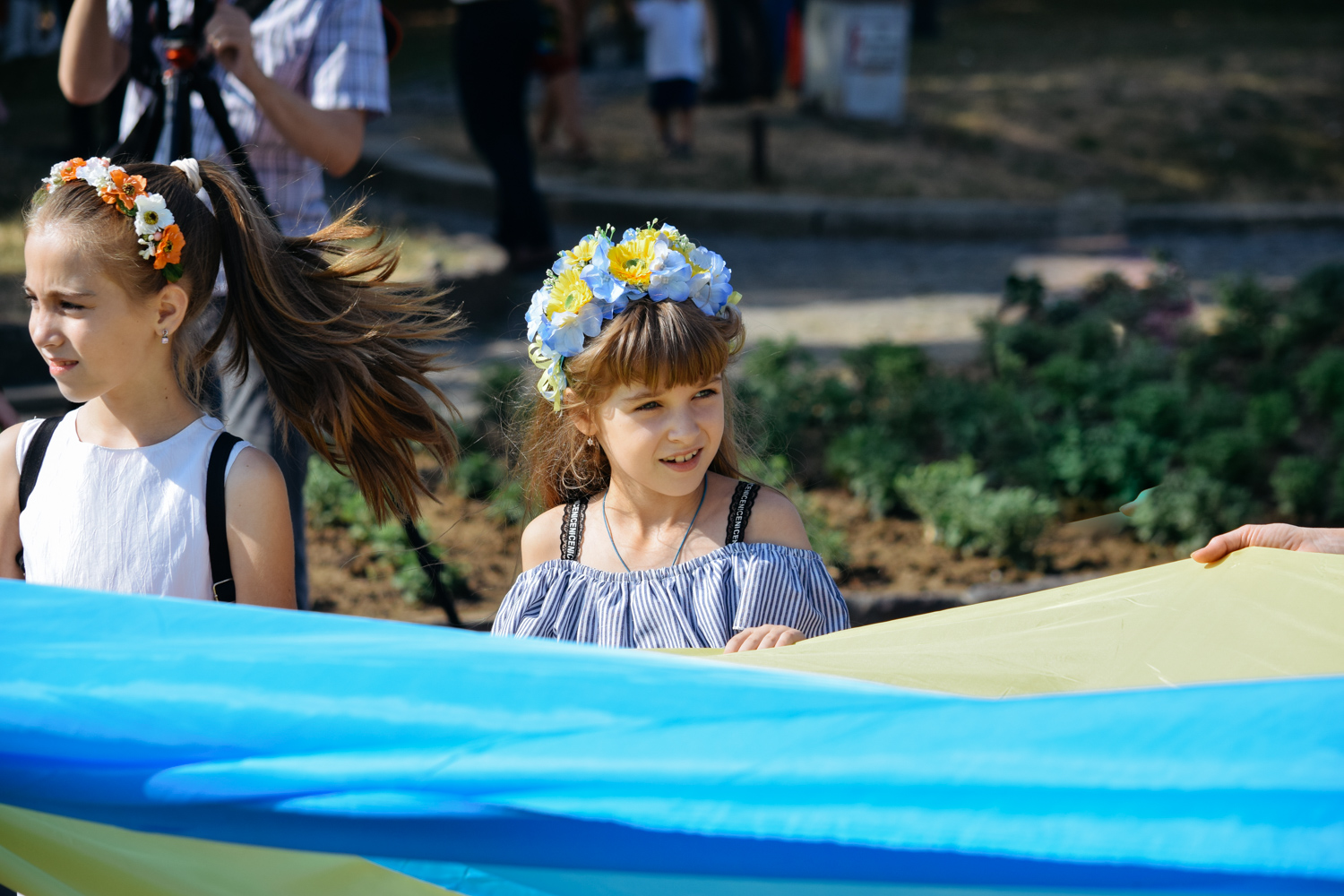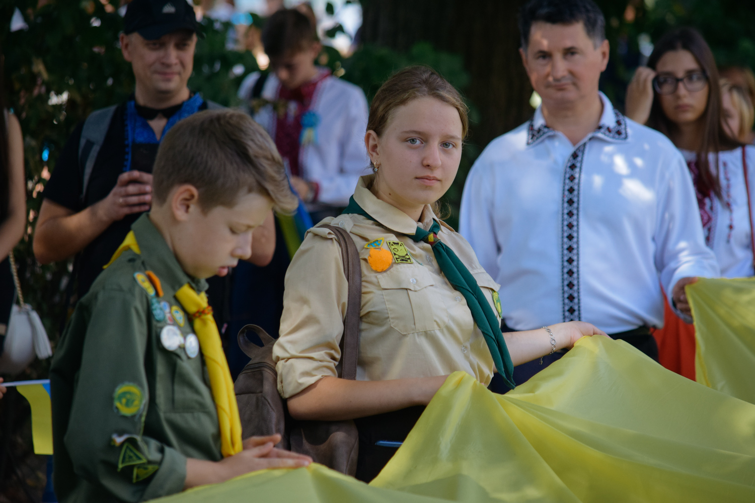 Далі святкова хода зі 100-метровим Державним прапором, на чолі якої марширував ансамбль барабанщиць Ужгородського коледжу культури і мистецтв, рушила набережною Незалежності до пам’ятника президенту Карпатської України Августину Волошину, де також відбулося покладання квітів. Оркестр головного управління Національної поліції України виконав Державний гімн України, після чого хода рушила через пішохідний міст до облмуздрамтеатру, з’єднавши два береги Ужа 100-метровим стягом.