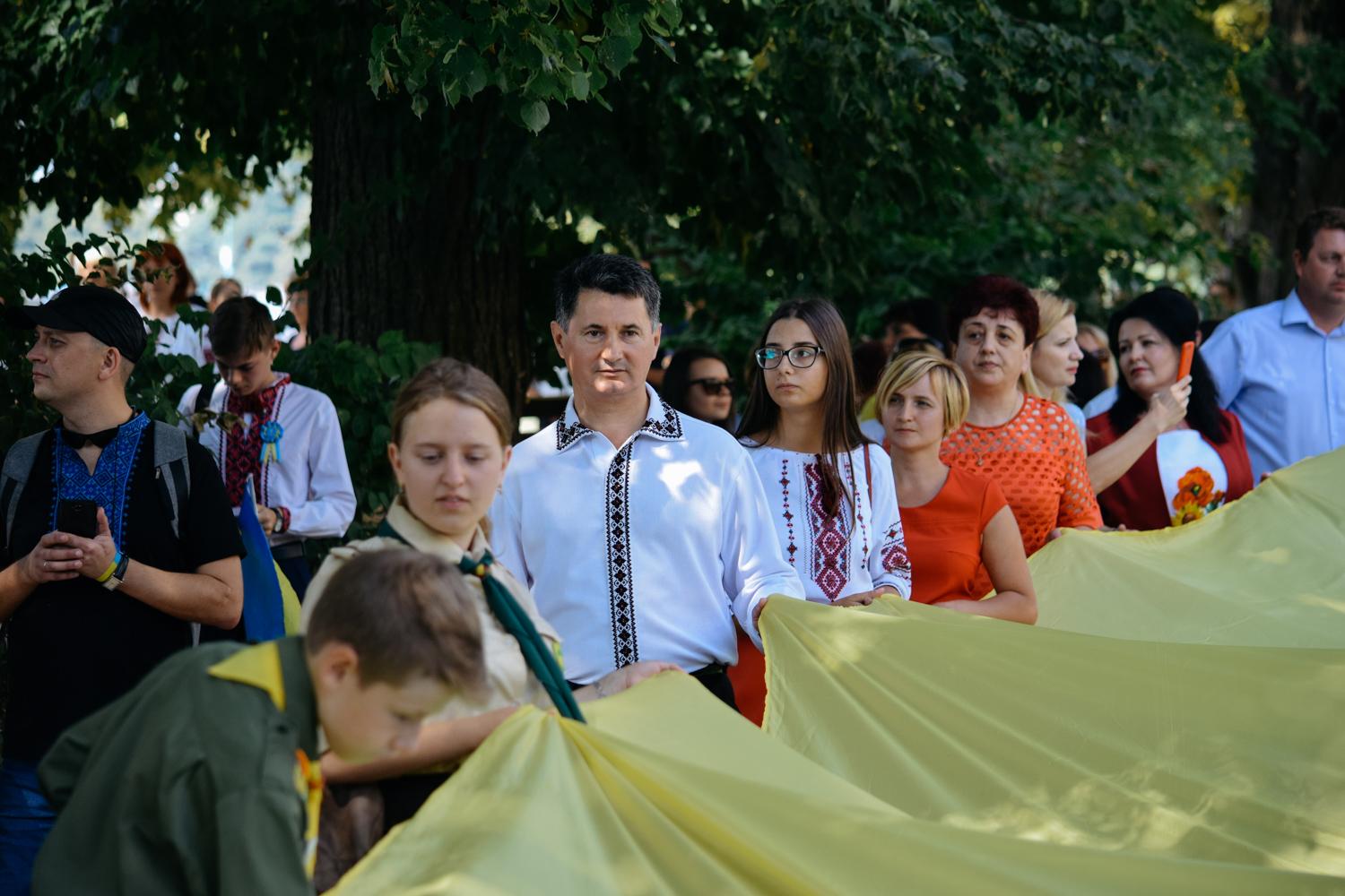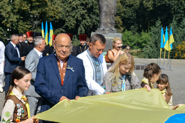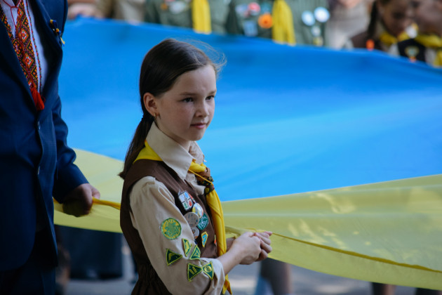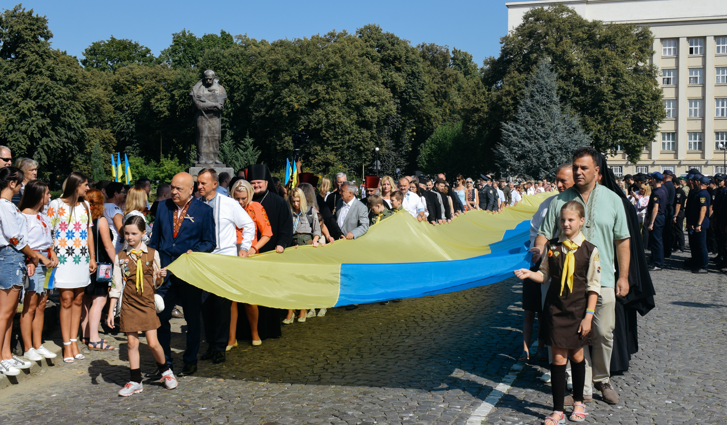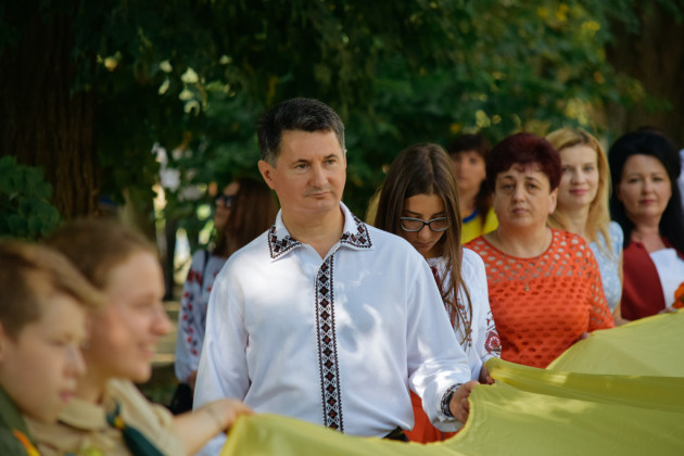 Урочистою ходою з розгортанням 100-метрового жовто-блакитного прапора відзначили День Державного прапора України в Ужгороді.