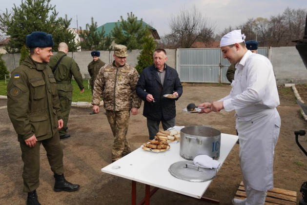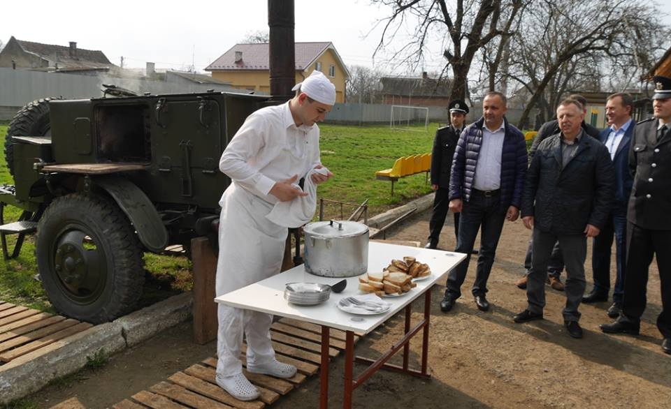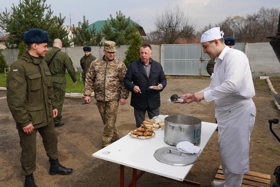 Пізніше керівник 4 стрілецького батальйону Олег Конопляник провів ознайомчу екскурсію. Гостям продемонстрували, як проходять навчання військових, як працює польова кухня, запросили всіх спробувати солдатську їжу.