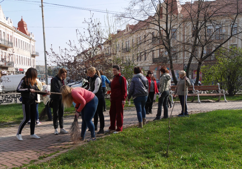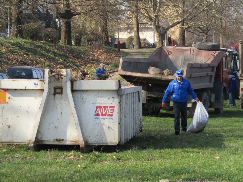 Прибирали парки, сквери, у тому числі біля Закарпатської ОДА, схили Слов’янської набережної, Ротарі-парк, площу Петефі, території біля медичних закладів та амбулаторій, освітніх закладів, облмуздрамтеатру, працівники ЖРЕР №5 вичищали від сміття парк Перемоги («Кірпічка»).