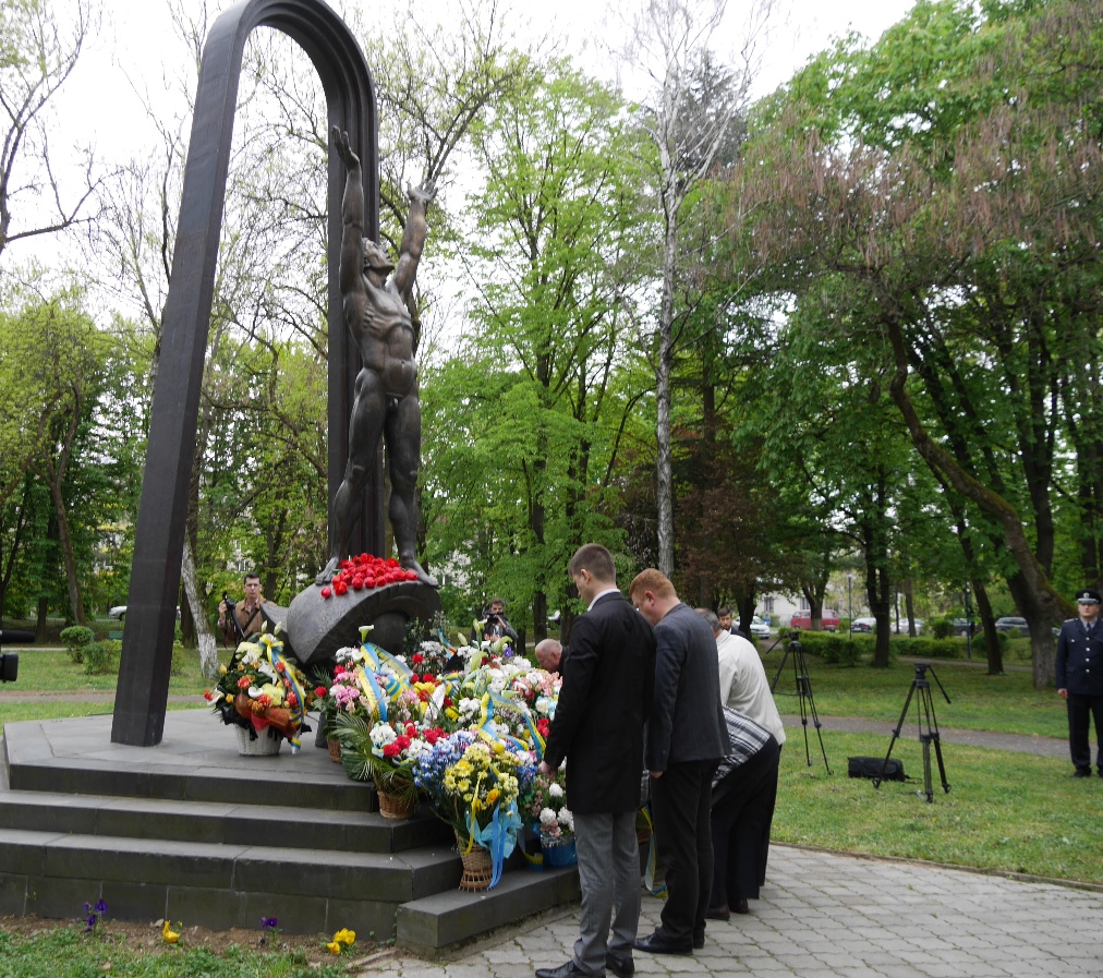 Пам’ять тих, хто віддав своє життя, намагаючись приборкати наслідки техногенної катастрофи, вшанували сьогодні і Ужгороді. Голова Закарпатської облдержадміністрації Геннадій Москаль, голова Закарпатської обласної ради Михайло Рівіс, в.о. Ужгородського міського голови, керуючий справами виконкому міської ради Олена Макара, секретар Ужгородської міської ради Андріана Сушко, заступник міського голови Ужгорода Олександр Білак, в.о. заступника міського голови Ігор Фартушок, керівники районних адміністрацій, правоохоронних, контролюючих органів, фіскальної служби, силових структур, військові, представники громадських організацій, чорнобильці, просто небайдужі ужгородці прийшли на площу Дружби народів. Тут відбувся мітинг-реквієм та покладання квітів до пам’ятника закарпатським ліквідаторам. Пам’ять усіх загиблих вшанували хвилиною мовчання та символічним залпом.