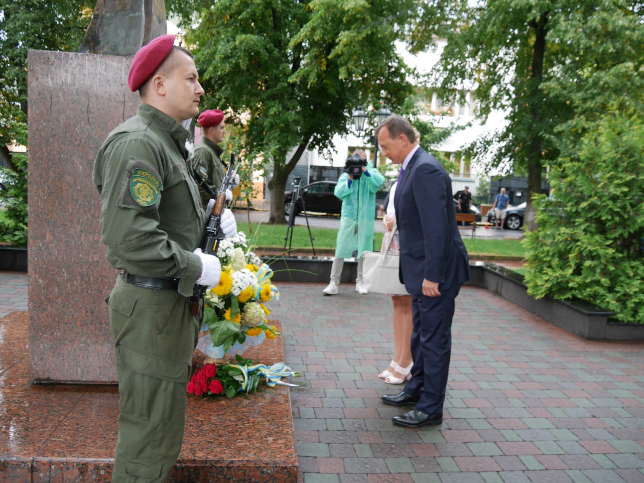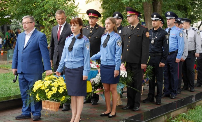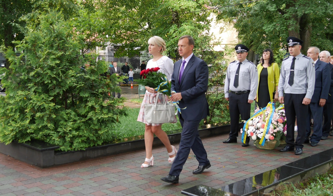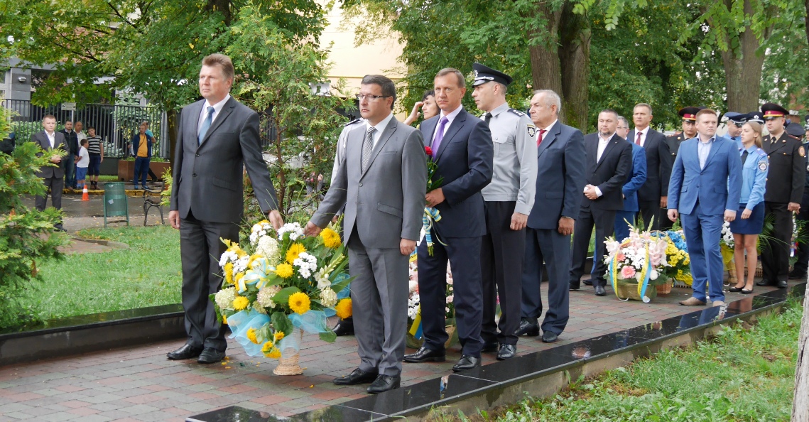 На Православній набережній в Ужгороді квіти до підніжжя монументу загиблим працівникам органів внутрішніх справ Закарпатської області сьогодні поклали керівники області та міста, керівники правоохоронних та силових структур, рідні та колеги загиблих.