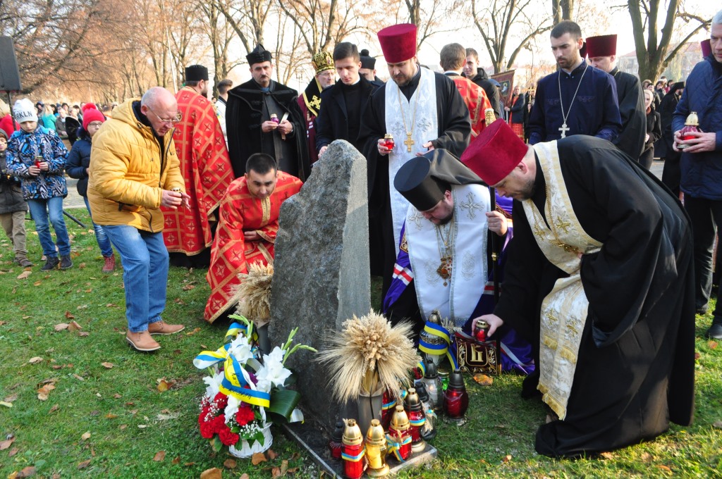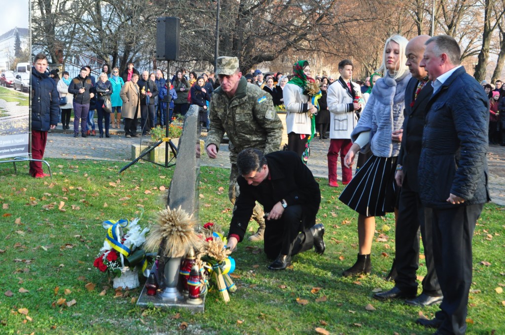 Ужгородці поклали до наріжного каменю памʼятника «Жертвам голодоморів в Україні» колоски пшениці та запалили десятки лампадок як символі памʼяті і скорботи за померлими у часи страшного голоду 1921-1922, 1932-1933, 1946-1947 років.