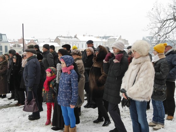 Представники єврейської громади міста, заступник голови Закарпатської обласної адміністрації Олександр Петік, Ужгородський міський голова Богдан Андріїв, Генеральний консул Угорщини в Ужгороді Йожеф Бугайла, Генеральний консул Словаччини в Ужгороді Янка Буріанова та інші прийшли до пам’ятника жертвам Голокосту, встановленому торік біля Закарпатської обласної філармонії за сприяння уряду Угорщини.