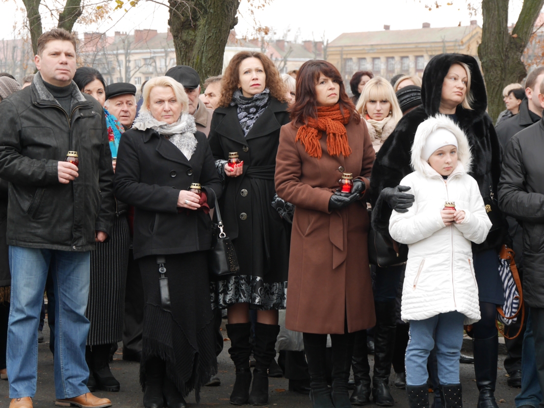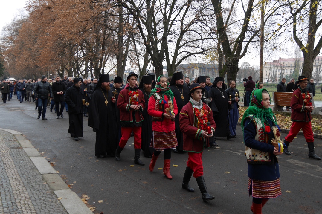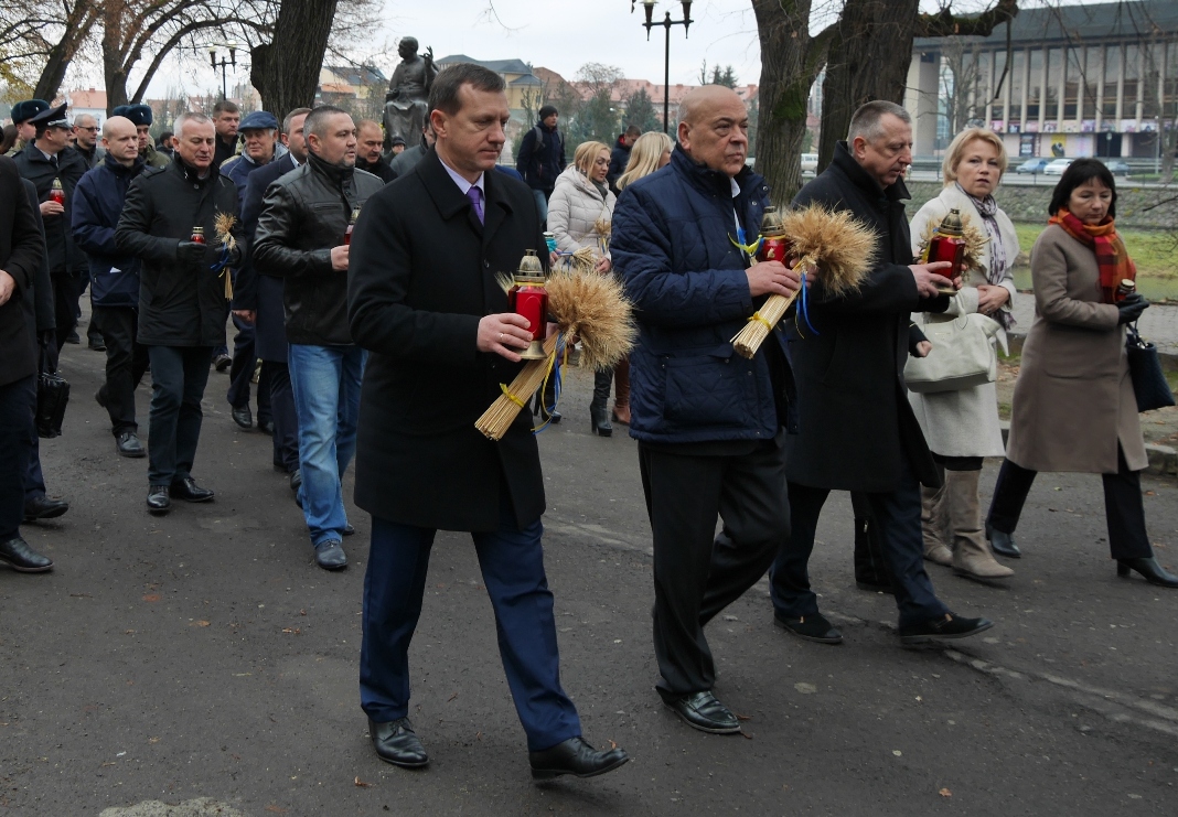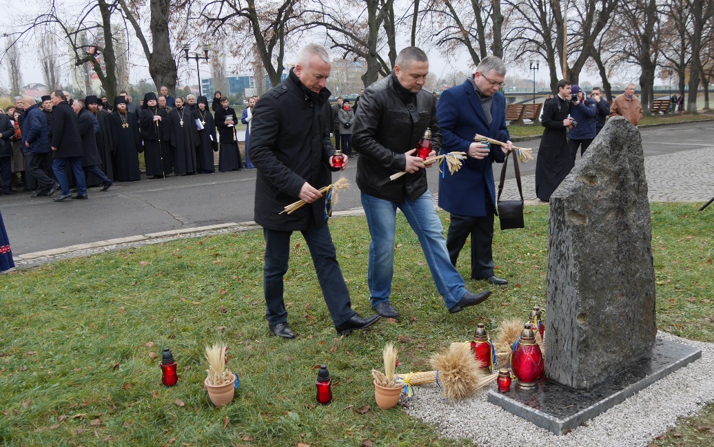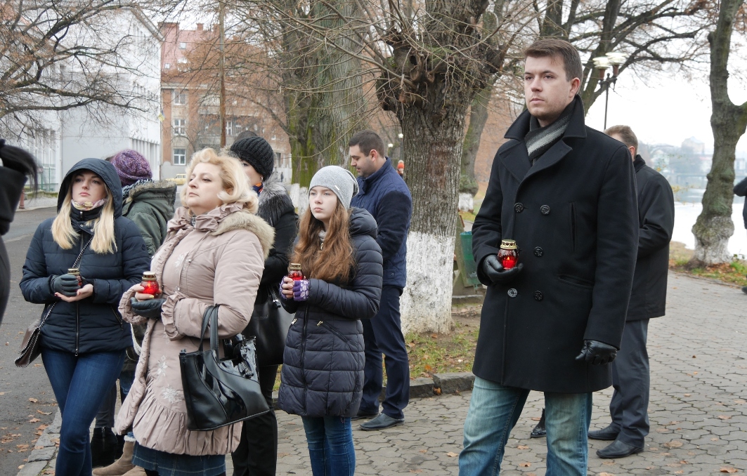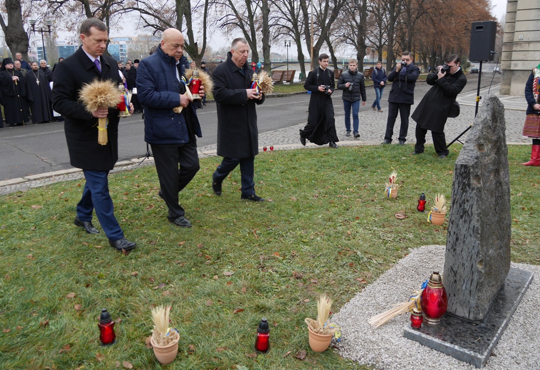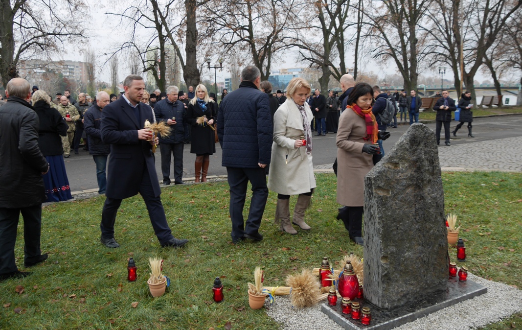Жертв геноциду вшанували і в Ужгороді. Із площі Поштової до Набережної Незалежності пройшла скорботна хода до площі перед медичним факультетом УжНУ – місця освячення наріжного каменю, де буде встановлено пам’ятник жертвам голодоморів.