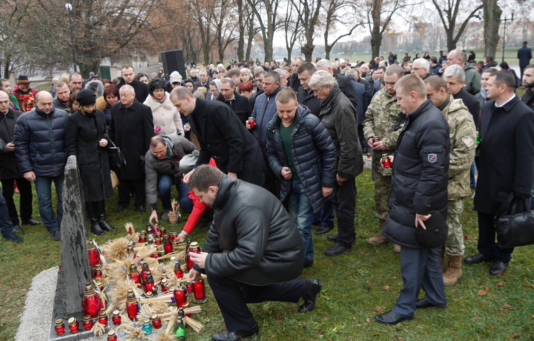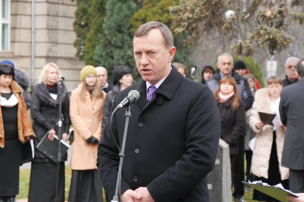 «Сьогодні ми зібралися з вами у місці, де буде встановлено пам’ятник жертвам голодоморів в Україні. Тоталітарний більшовицький режим прагнув знищити українське селянство, довів до зубожіння мільйони українців, у багатьох забрав життя… Народ, який не пам’ятає свого минулого – не має майбутнього. І наше з вами завдання – ніколи не забувати про це і зробити все можливе, щоб ці страшні сторінки історії ніколи не повторилися, – підкреслив міський голова Богдан Андріїв. Він також повідомив, що оголошено конкурс, на якому оберуть найкращий проект майбутнього пам’ятника.