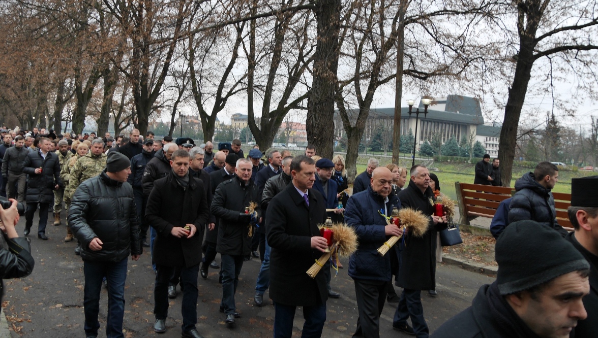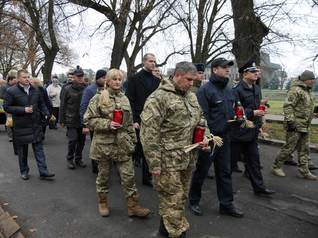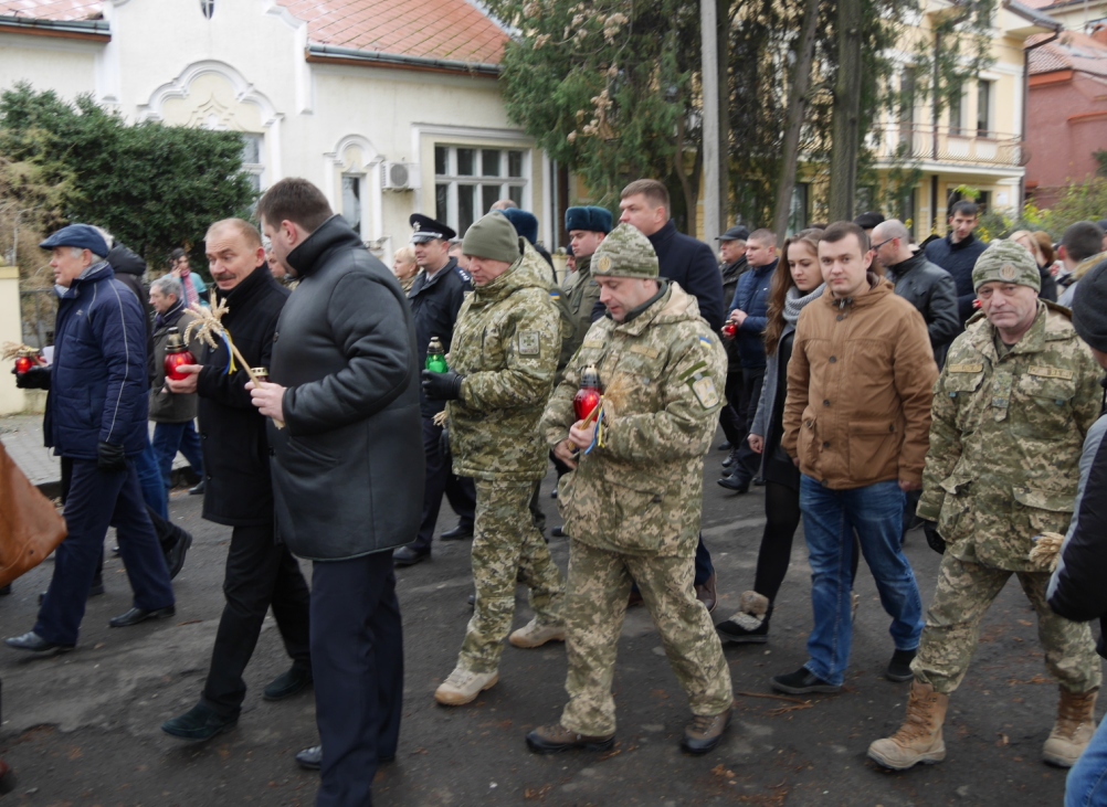 Участь у траурній ході взяли сотні людей, серед яких голова Закарпатської ОДА Геннадій Москаль, заступник голови Закарпатської обласної ради Петро Грицик, Ужгородський міський голова Ужгорода Богдан Андріїв, перший заступник міського голови Іштван Цап, секретар міської ради Андріана Сушко, керуючий справами виконкому Ужгородської міської ради Олена Макара, депутати міської ради, керівники обласних відомств та установ, правоохоронних органів, працівники виконкому міської ради, представники патрульної поліції, священнослужителі, військовослужбовці та інші. Сотні людей принесли колоски пшениці та запалили лампадки.