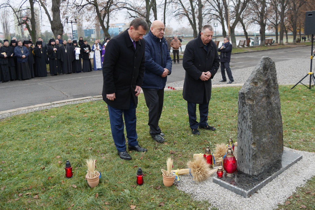 Присутні вшанували хвилиною мовчання пам’ять мільйонів українців, які загинули мученицькою смертю від голоду, а священнослужителі різних конфесій провели поминальну панахиду та освятили наріжний камінь.
