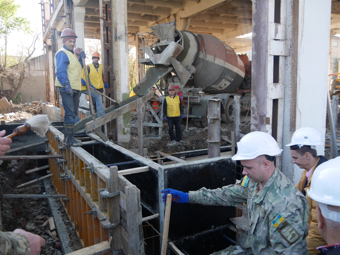 З молитвою освятили наріжні камені будівлі, заклали «капсулу часу», керівники області та міста, військовий комісар кинули перші символічні лопати будівельного розчину для закладки фундаменту однієї із зовнішніх стін споруди.