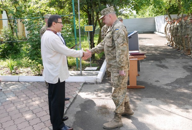 “Українці – народ мирний і працьовитий, але водночас – мужній і хоробрий. І саме такі, як Ви, взявши до рук зброю, з гідністю і честю захистили рідну домівку, рідний край, нашу Батьківщину. Саме Ви сьогодні є творцями сучасної героїчної історії України, саме Ви сьогодні є обличчям укарїнської нації. Низький уклін та велике Вам спасибі за Вашу мужню звитягу, за Вашу хоробрість, відданість та патріотизм”, – сказав Іштван Цап. За дорученням міського голови Богдана Андріїва він вручив цінні подарунки та грамоти підполковнику Олександру Кошенку та старшині Віталію Ткачуку, а також грамоти майору Ростиславу Данканичу та молодшому сержанту Максиму Опіярі.