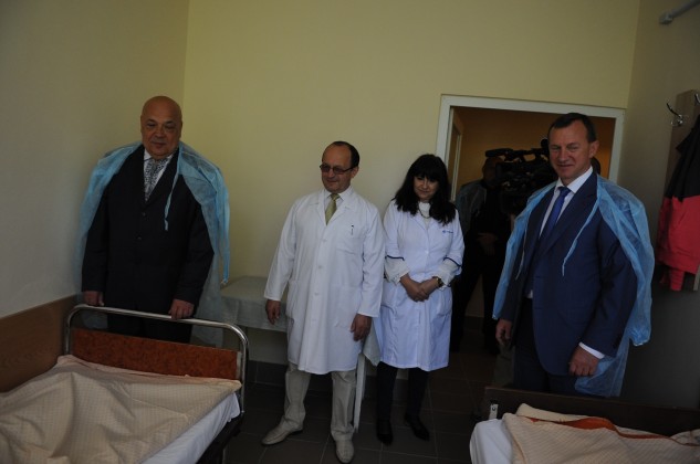 Терапевтичне відділення Ужгородської центральної клінічної лікарні, у якому наприкінці лютого закінчили капітальний ремонт, відвідали сьогодні голова Закарпатської ОДА Геннадій Москаль, Ужгородський міський голова Богдан Андріїв, депутати обласної ради Андрій Андріїв та Леонід Баранюк, депутати Ужгородської міської ради Юрій Мандич, Василь Гомонай та Юрій Оксьон, начальник відділу охорони здоров’я Ужгородської міської ради Василь Решетар, начальник управління капітального будівництва Адам Юрко.