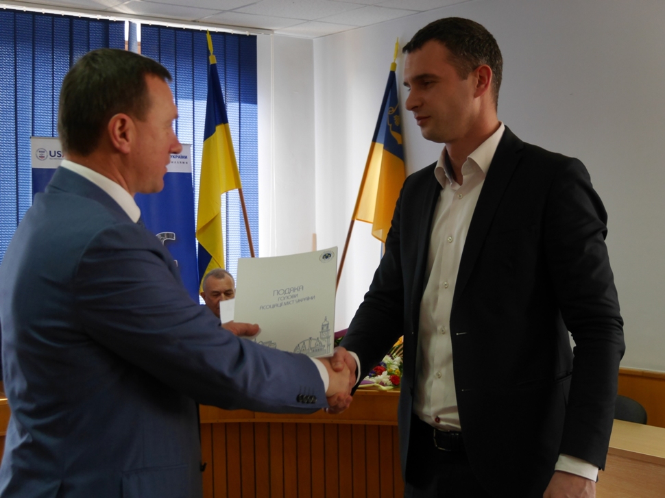 Міський голова Ужгорода також виконав приємну місію – від імені колег привітав з днем народження Івана Ревтія та передав нагороду Асоціації міст України селищному голові Міжгір’я Віталію Цімботі.