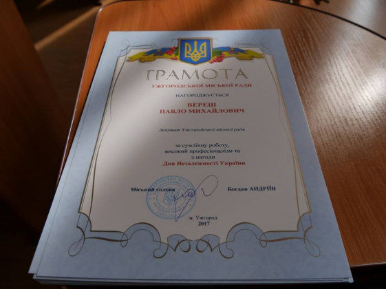 З нагоди свята за сумлінну роботу він вручив грамоти міської ради працівникам виконкому та депутатам Ужгородської міської ради.