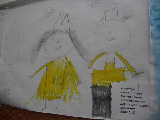 «Хочу бути хорошим чоловіком», – так назвав свій малюнок на конкурсі про професію мрії один із першокласників Ужгородської ЗОШ №13, де вчаться переважно ромські діти. Інші школярі хочуть бути стюардесами, лікарями, перукарями, вчителями, аніматорами, майстрами тату, космонавтами, поліцейськими тощо, а також феями, принцами і принцесами.