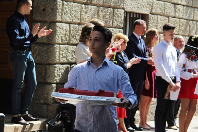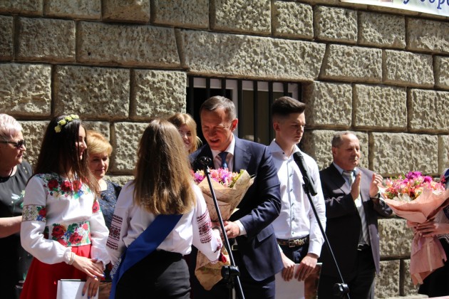 Усіх, хто відзначає сьогодні свято Останнього дзвоника, привітав Ужгородський міський голова Богдан Андріїв, який завітав на свято до Лінгвістичної гімназії. “Щиро вітаю вас, дорогі діти, педагоги, батьки із закінченням навчального року. Для багатьох школярів розпочинається весела пора – канікули, коли ви зможете відпочити та набратися сил. Хвилююча і водночас радісна мить сьогодні – для наших випускників: уже за кілька тижнів, склавши усі ЗНО, ви підете у самостійне життя. Підете із солідним запасом знань, які ви отримали протягом 11 років навчання. Переконаний, що здобуті знання допоможуть вам у житті долати всі труднощі. Бажаю здобути професію і стати успішними, бути справжніми патріотами нашої країни, нашого міста, краю. Завжди пам’ятайте настанови ваших учителів, завжди прагніть нових звершень, нових висот”.