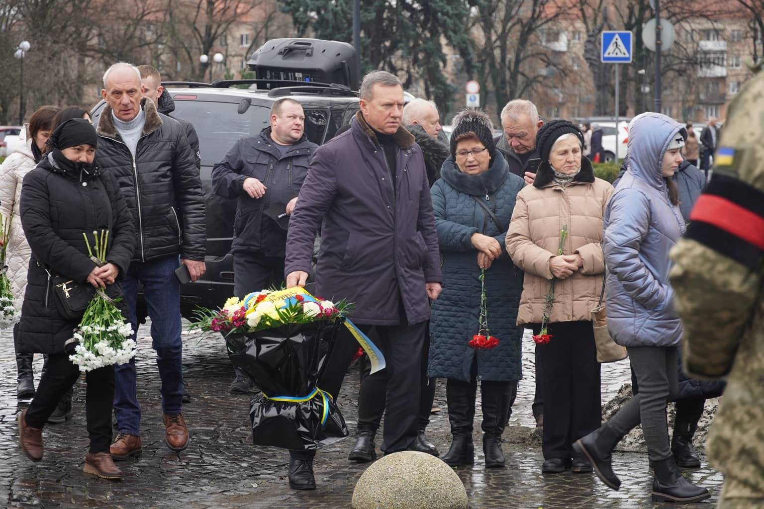 Чин похорону відбувся на площі Народній. Віддати шану полеглому прийшли рідні, друзі, військові, ужгородці, міський голова Богдан Андріїв.