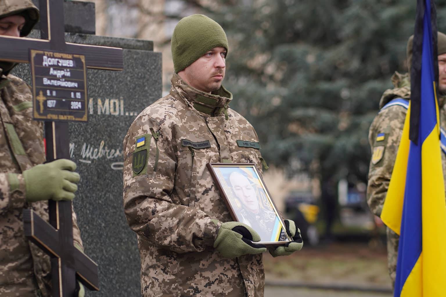 Після церемонії прощання жалобна хода вирушила до Пагорба Слави, де Андрія Долгушева поховали з військовими почестями.