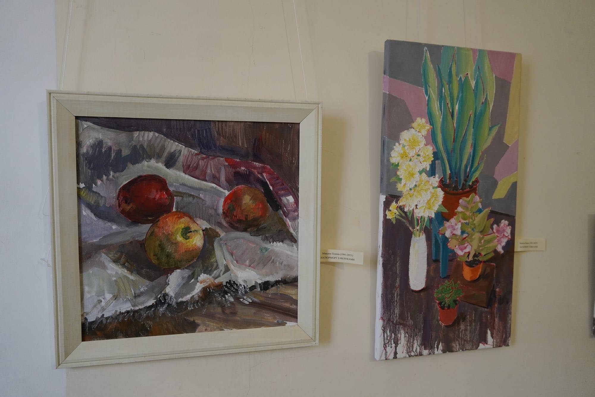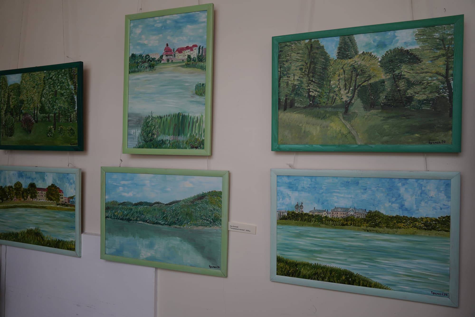 Серед експонатів – урбаністичні краєвиди Івана Бучмея, декоративні композиції Василя Матіки, пластичні роботи Михайла Ходанича, сакральні полотна Василя Теличко-Еверта, емоційні живописні твори Василя Дербаля та новаторські пошуки Ігоря Панічева, ліричні пейзажі й натюрморти полеглого Героя Максима Плеші.