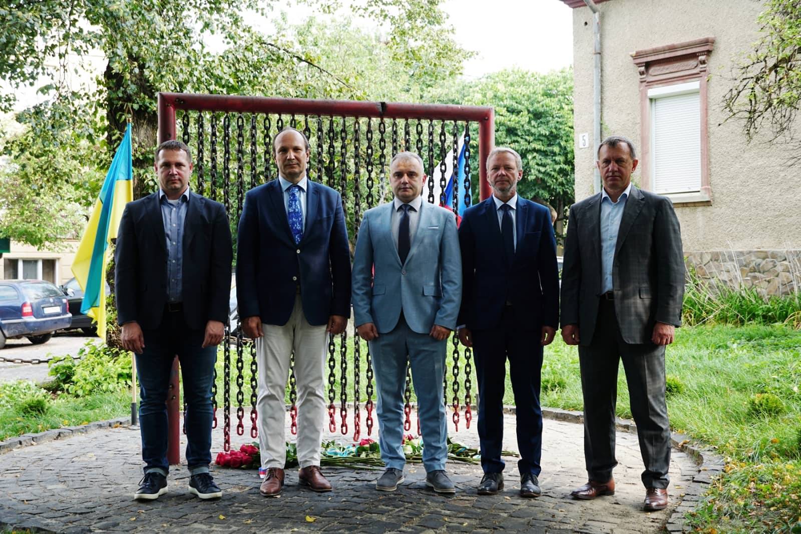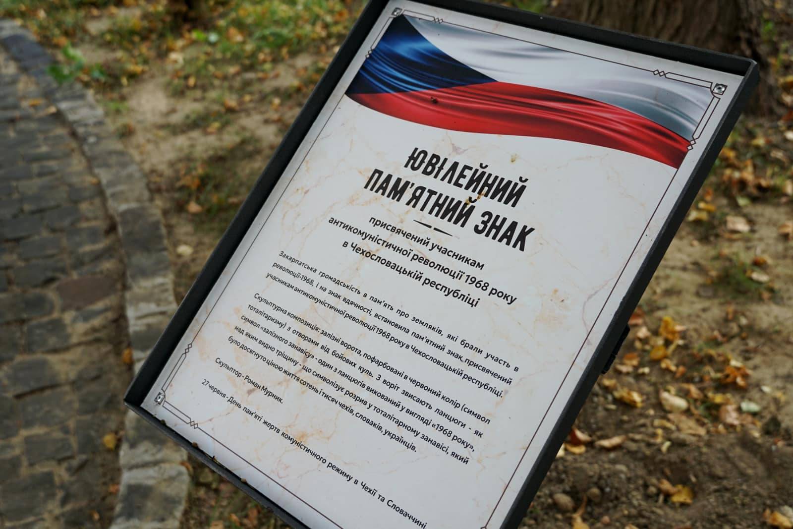Опісля гості та посадовці Закарпатської обласної й Ужгородської міської ради пішли до символічного пам’ятного знаку, присвяченого учасникам антикомуністичної революції 1968 року в скверику на вулиці Ференца Ракоці, де також відбулося покладання квітів та виступи представників української та чеської сторін.