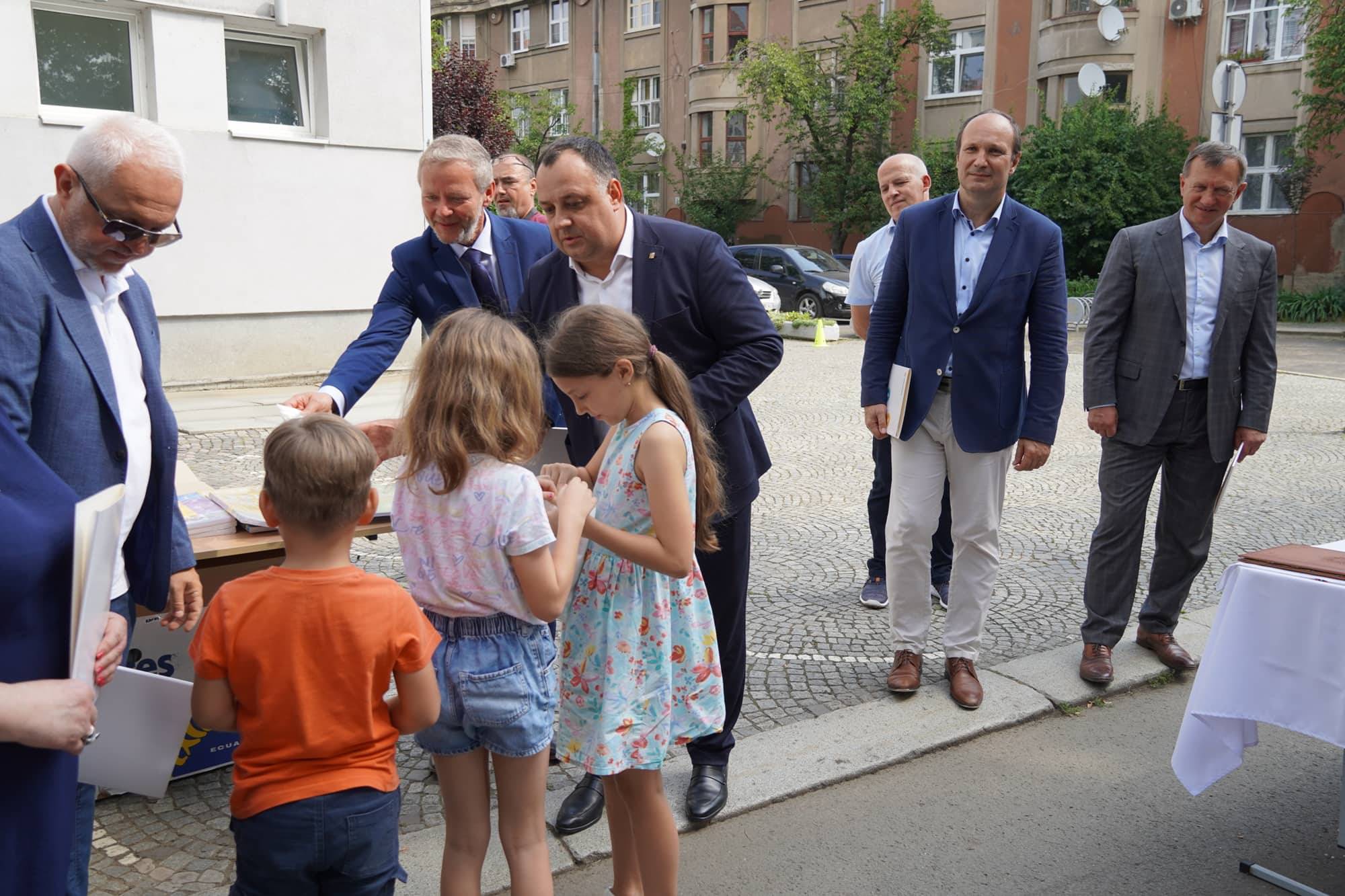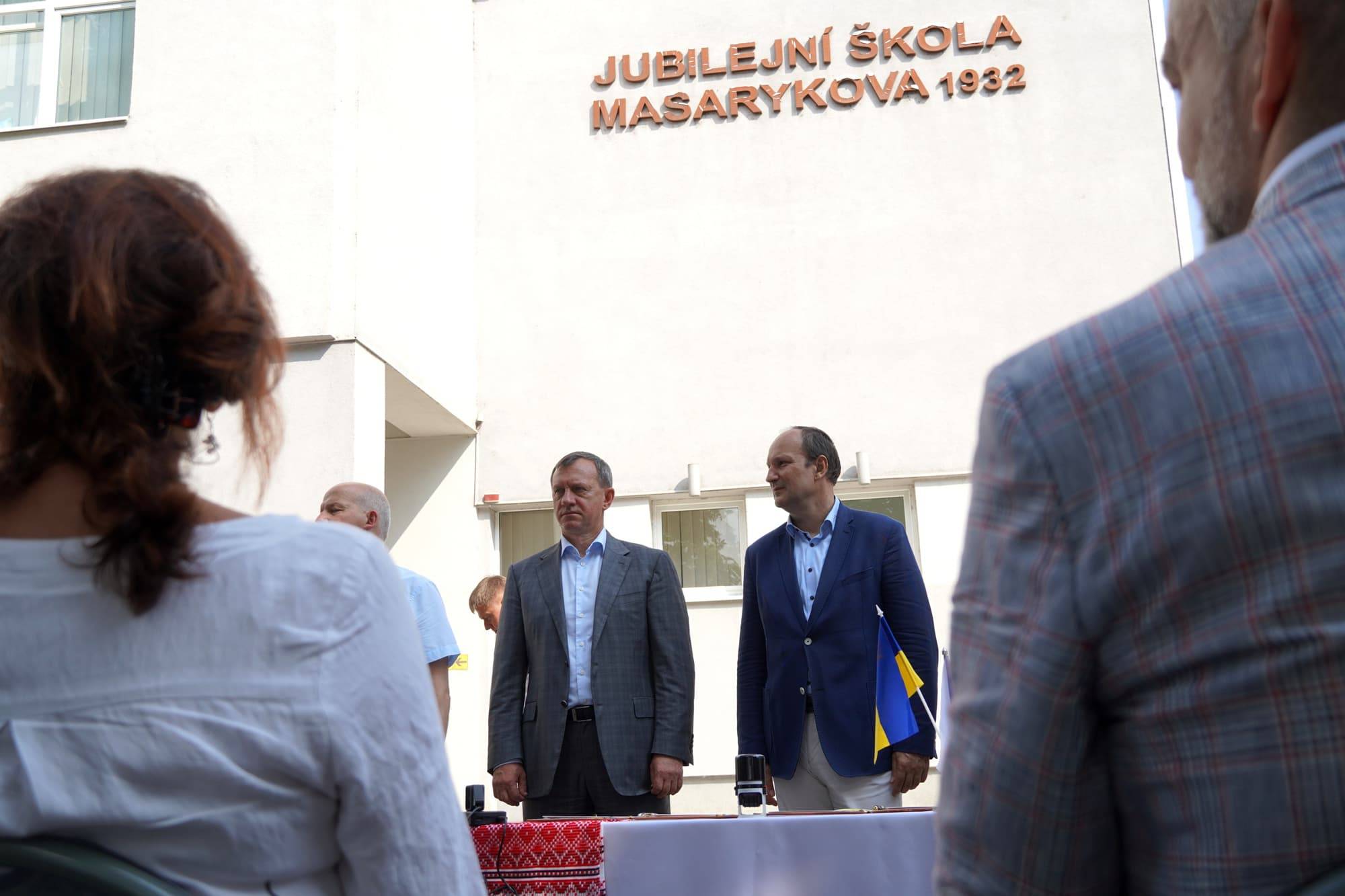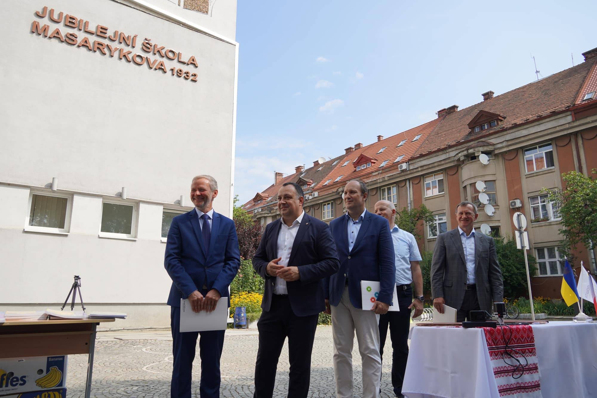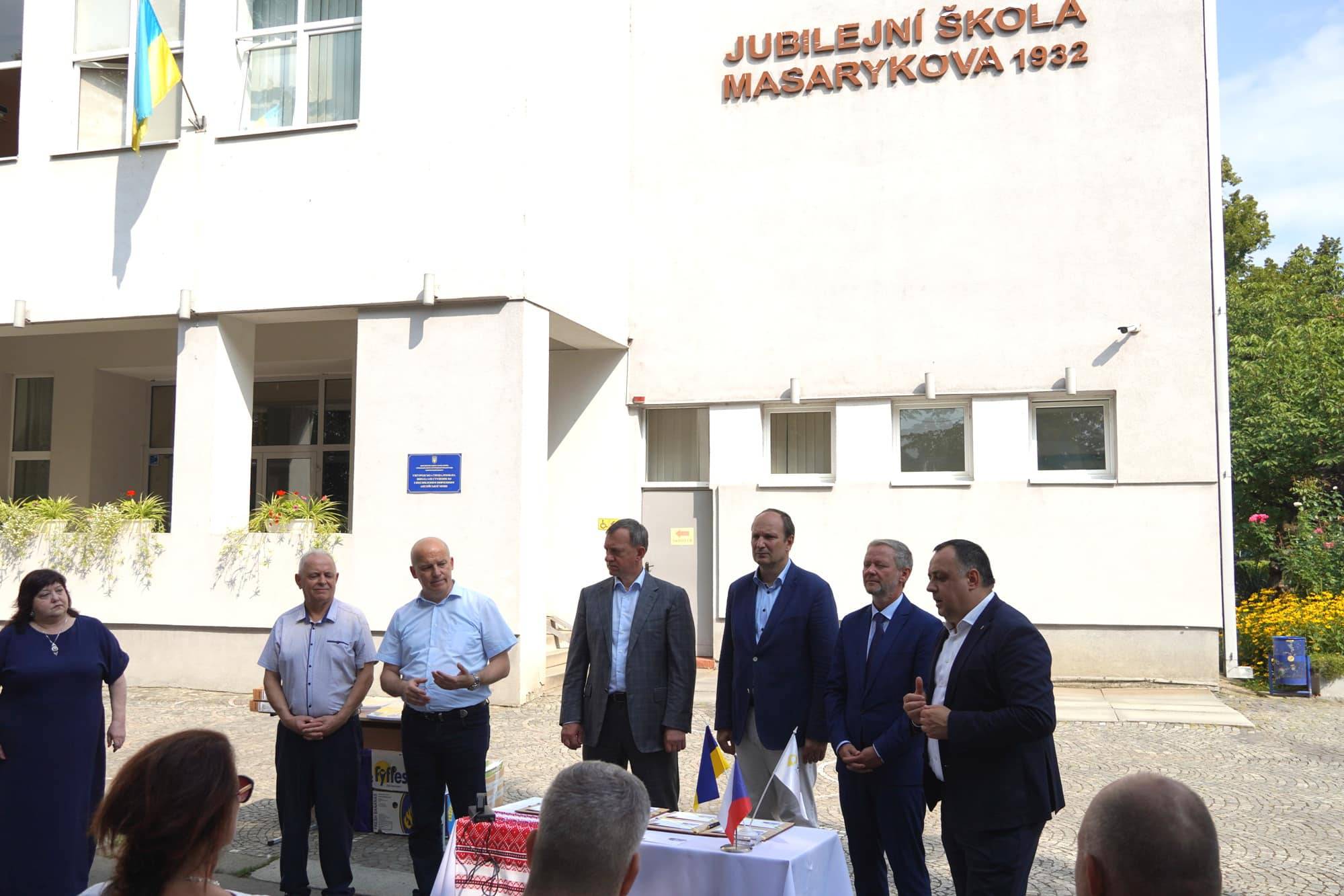 Завітала чеська делегація і до ужгородської ЗОШ І-ІІІ ступенів № 3 з поглибленим вивченням англійської мови. Тут погасили поштову марку, присвячену ювілейній Масариковій школі, у події взяв участь і голова Закарпатської обласної рали Володимир Чубірко. Крім того, гості з Чехії передали директорці закладу Світлані Фесенко підручники, оскільки в школі вивчають і чеську мову, а також подарунки від чеських діток їхнім ровесникам в Ужгороді.
