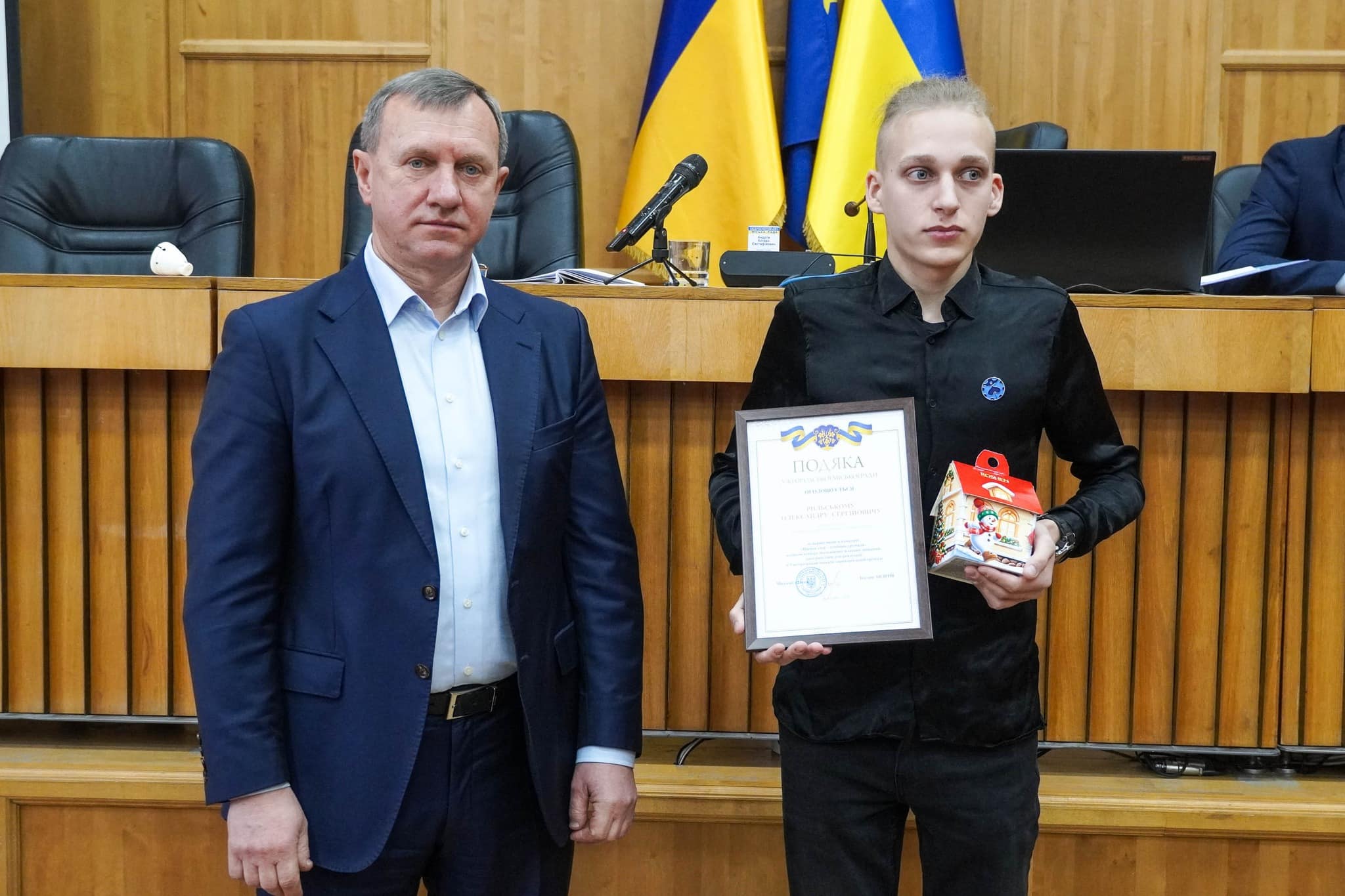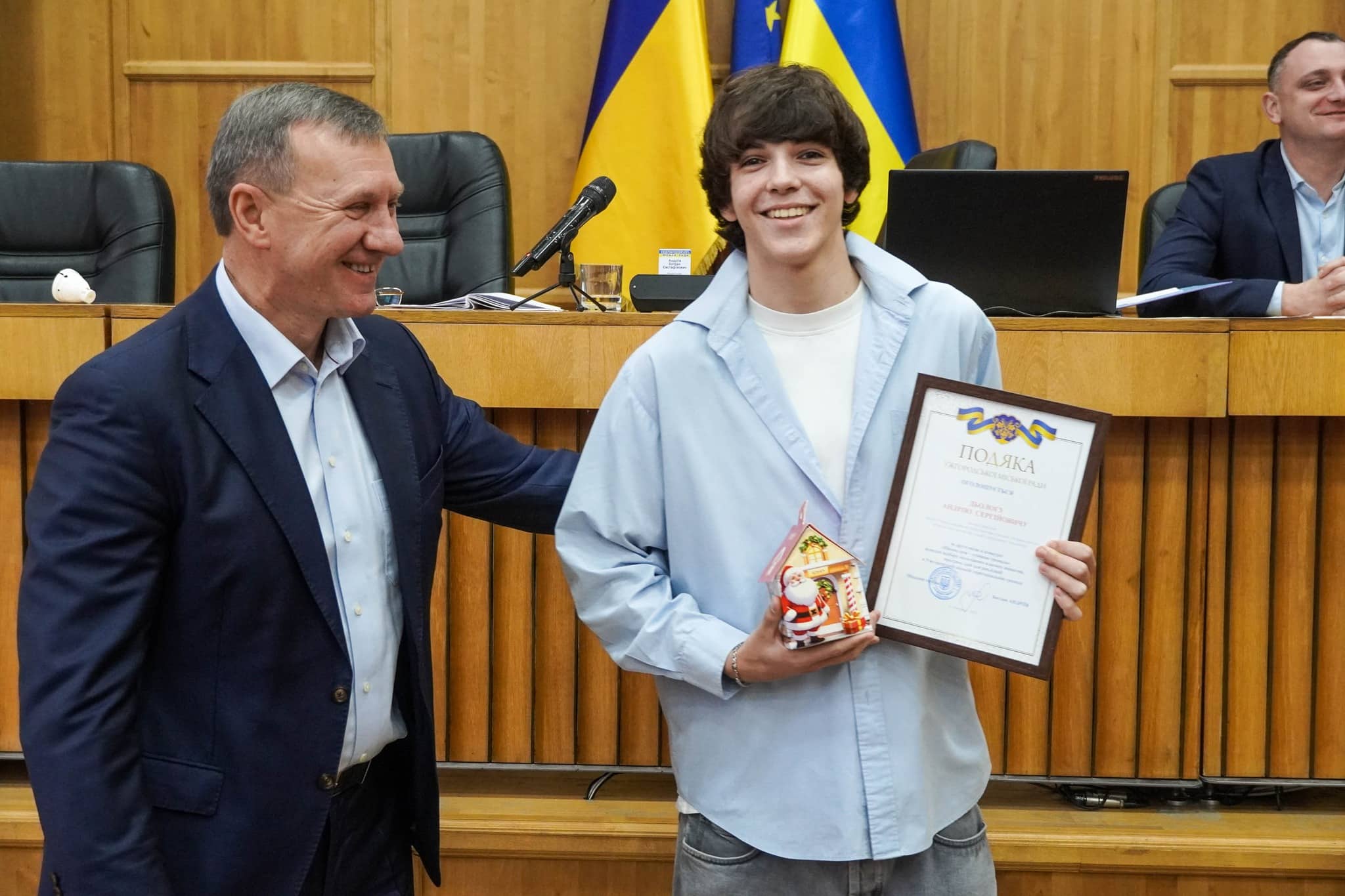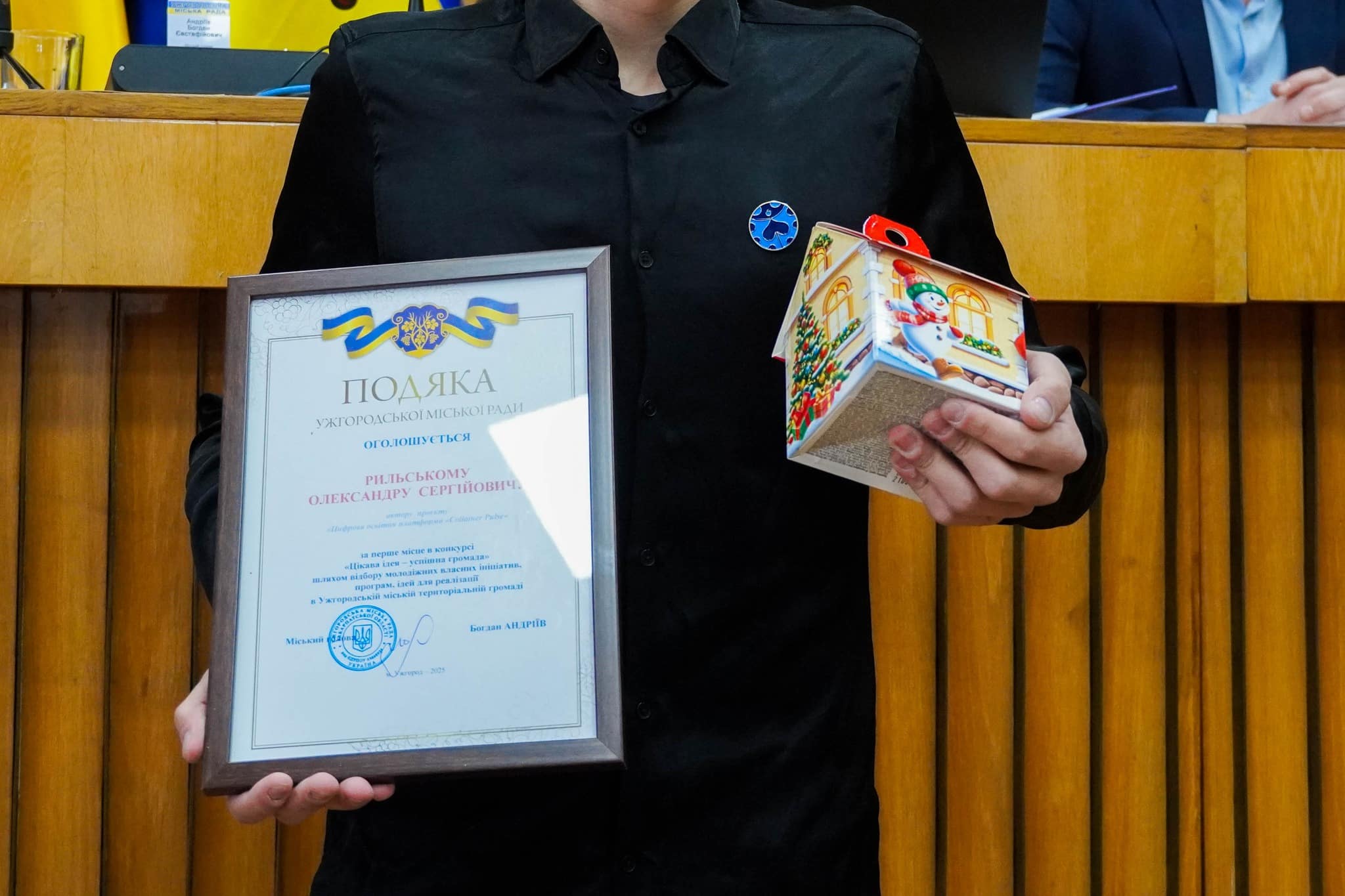 Міський голова Богдан Андріїв вручив подяки автору проєкту «Цифрова освітня платформа «Collainer Pulse» Олександру Рильському; автору проєкту «Sweet Cloud: створення безпечної та сучасної гастрономічної розваги для молоді та сімей у публічному просторі» Андрію Дьологу та авторці проєкту «ЕКО-УЖ: енергетична незалежність громади через переробку деревних відходів благоустрою у паливні пелети» Анні Яцишин.