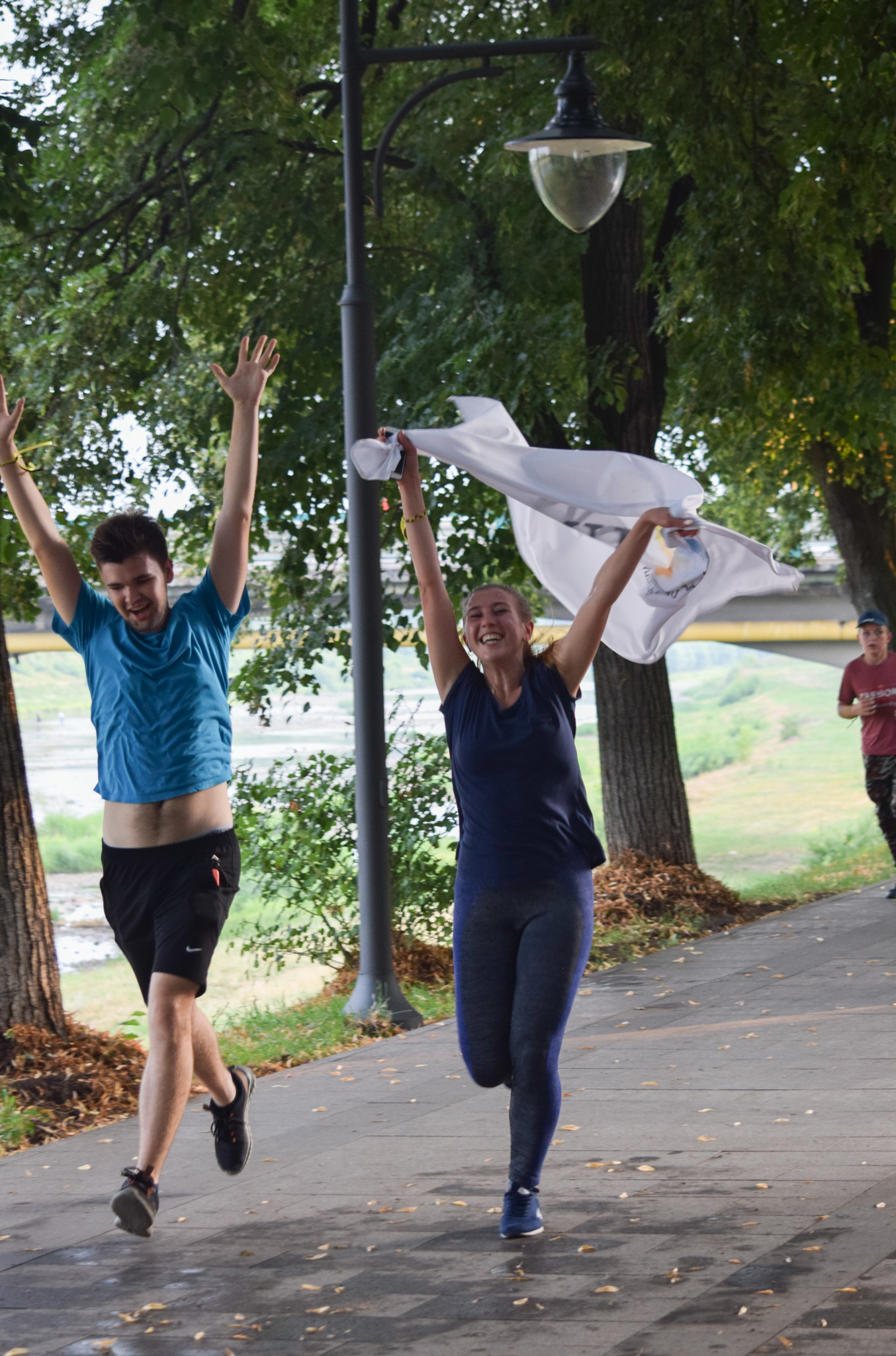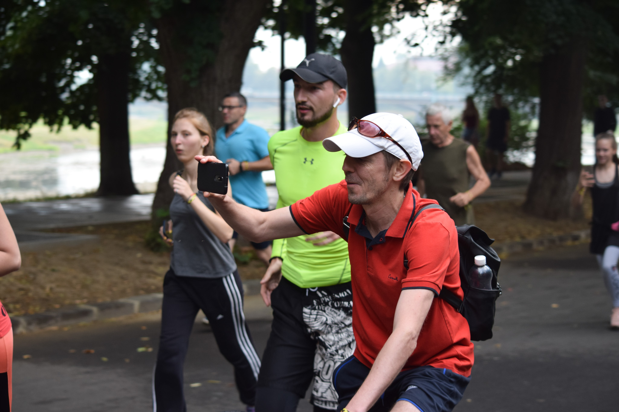Маленькі, дорослі і навіть чотирилапі учасники, загалом майже півсотні, бігли маршрутом: медичний факультет УжНУ – площа Театральна – пішохідний міст – драмтеатр – транспортний міст – медичний факультет. Багато хто активно селфився, а деякі "бігли" на велосипедах.