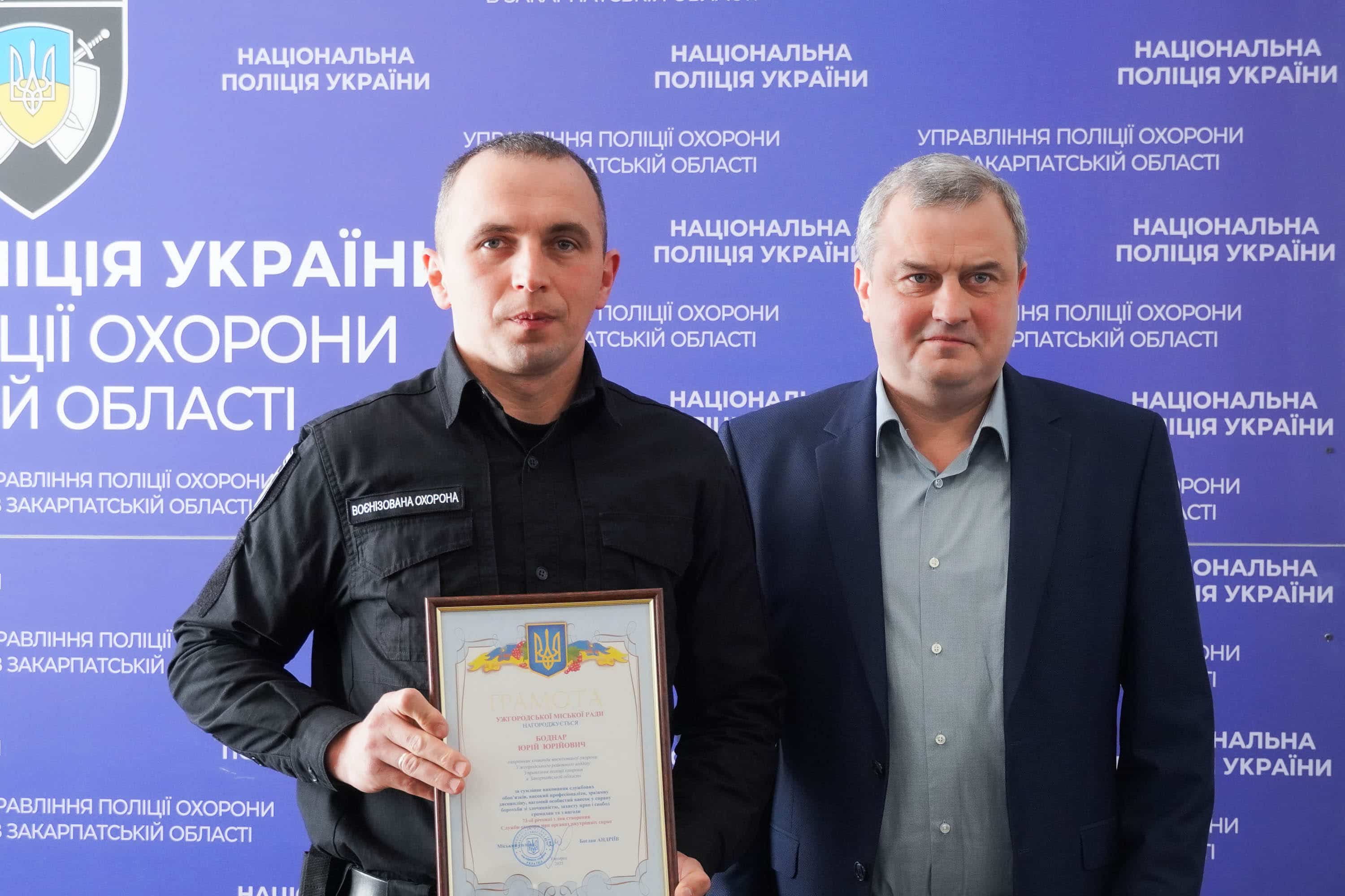 Особовий склад Управління поліції охорони привітали представники обласної та міської влади - голова Закарпатської обласної військової адміністрації Мирослав Білецький, в.о. міського голови, заступник міського голови Ужгорода Вадим Борець, начальник відділу патронатної служби виконавчого апарату обласної ради Василь Маковський. Вони подякували правоохоронцям за високий професіоналізм і щоденну турботу про безпеку мешканців.