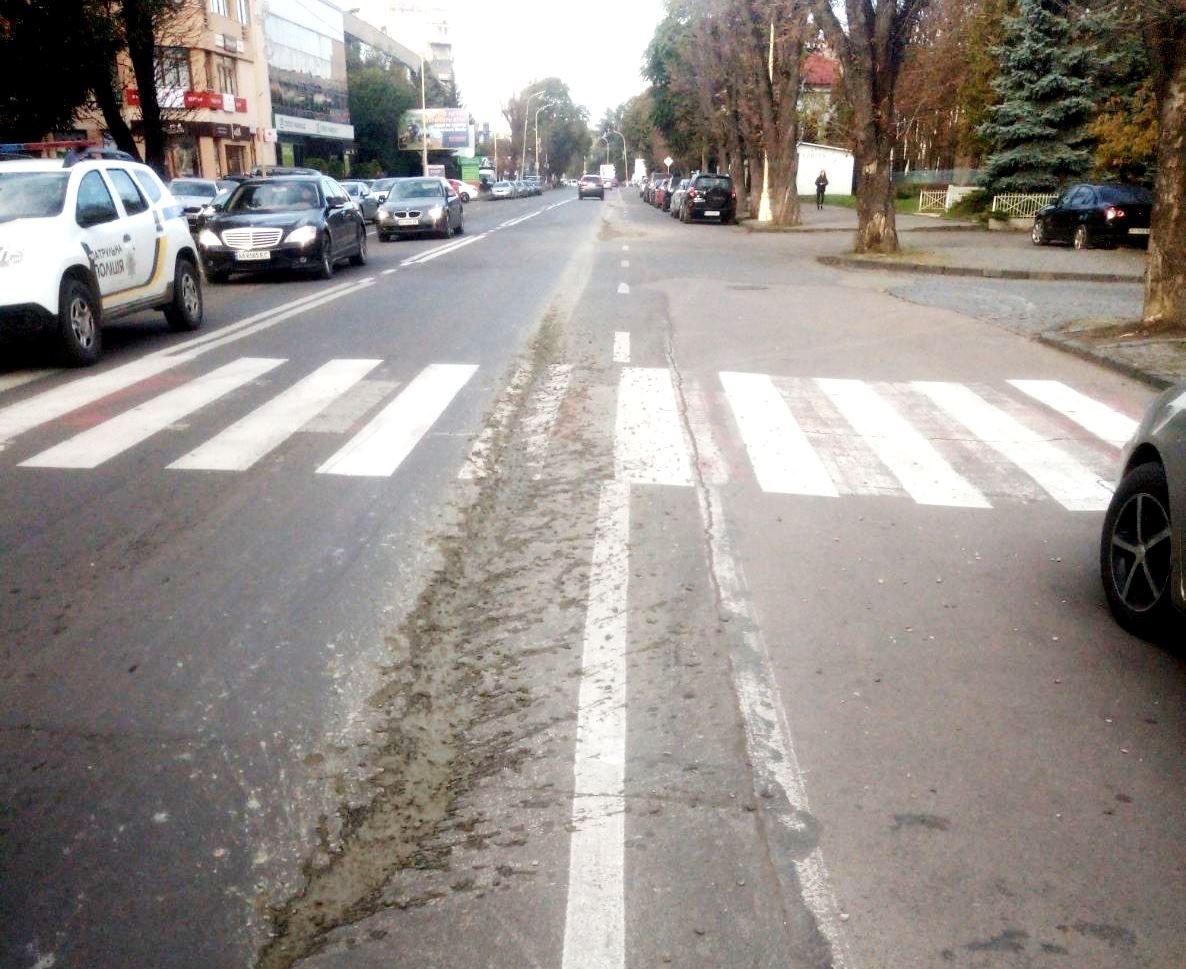 В Ужгороді склали протокол за адмінправопорушення на водія, який розлив бетон на проїжджій частині