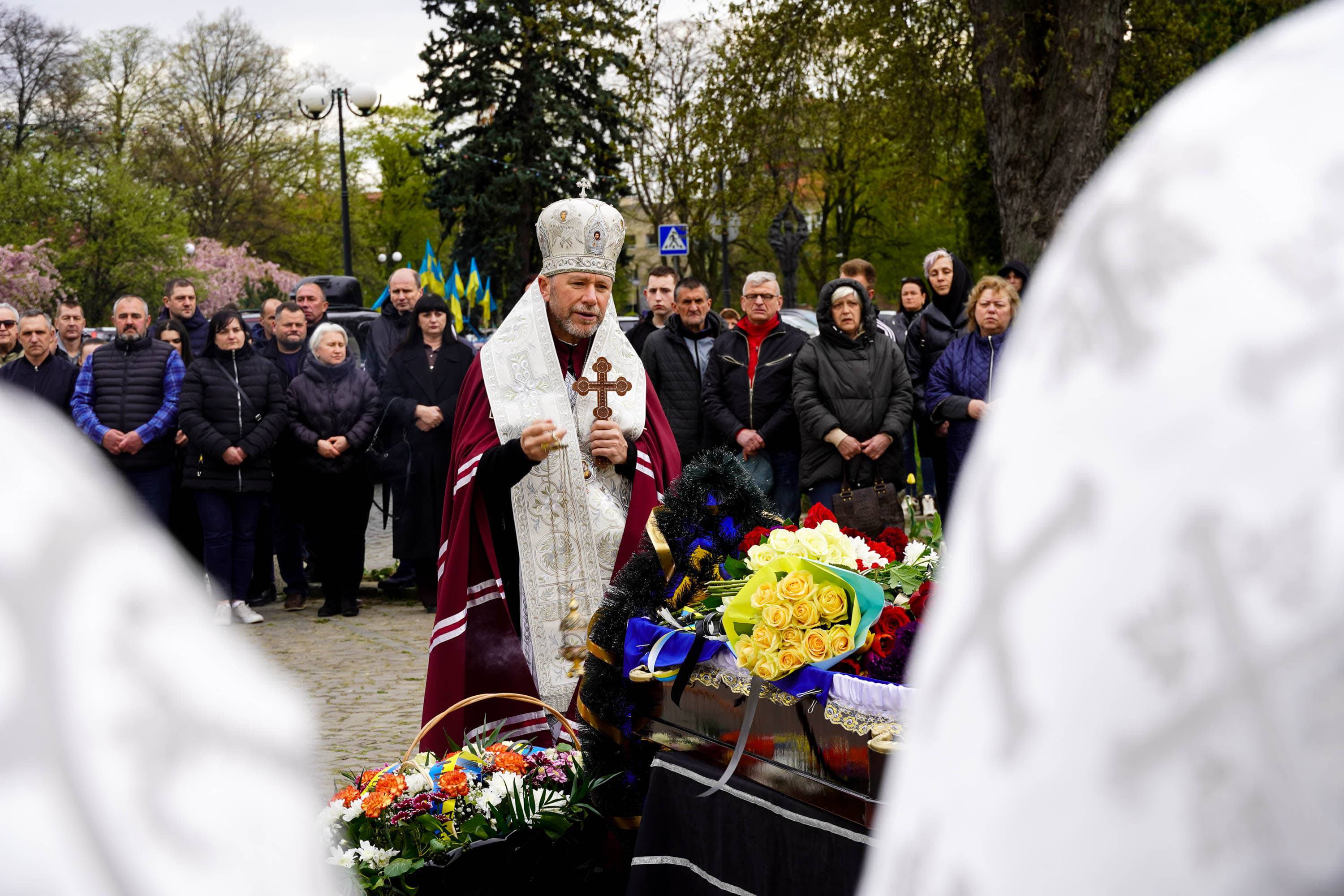 Чин похорону відбувся на площі Народній, попрощатися із воїном прийшли рідні та близькі, знайомі, військові, міський голова Богдан Андріїв, містяни.