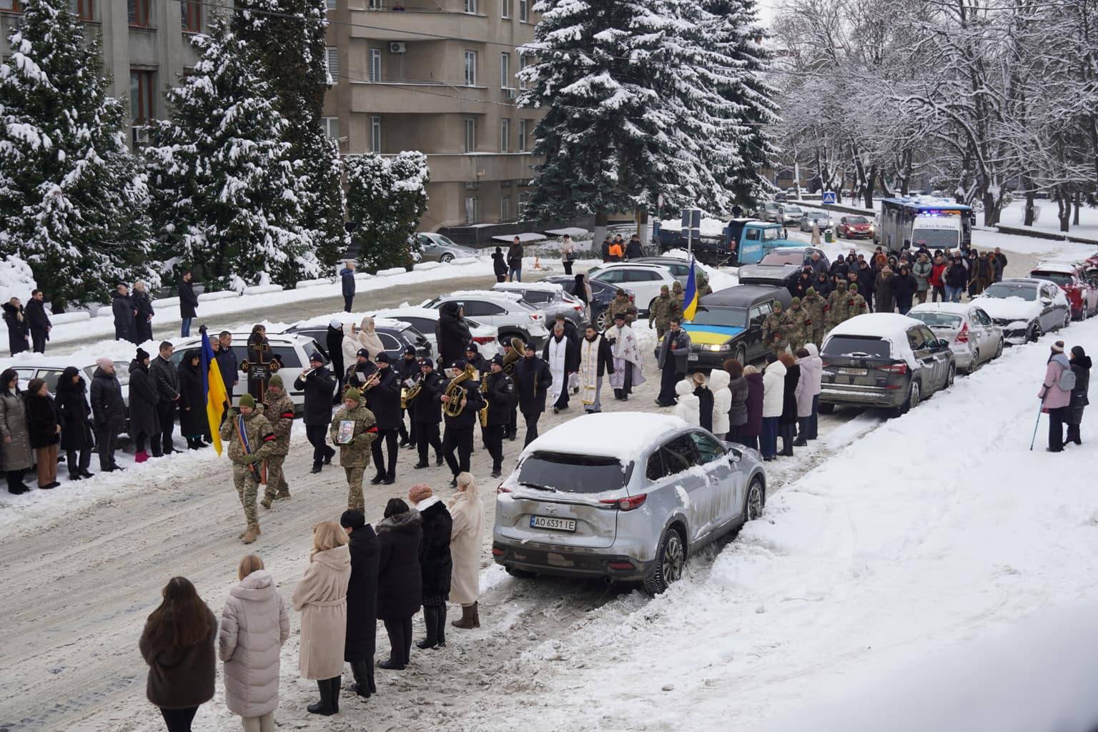 Чин похорону відбувся на площі Народній. Віддати шану полеглому прийшли рідні, друзі, військові, ужгородці, міський голова Богдан Андріїв.