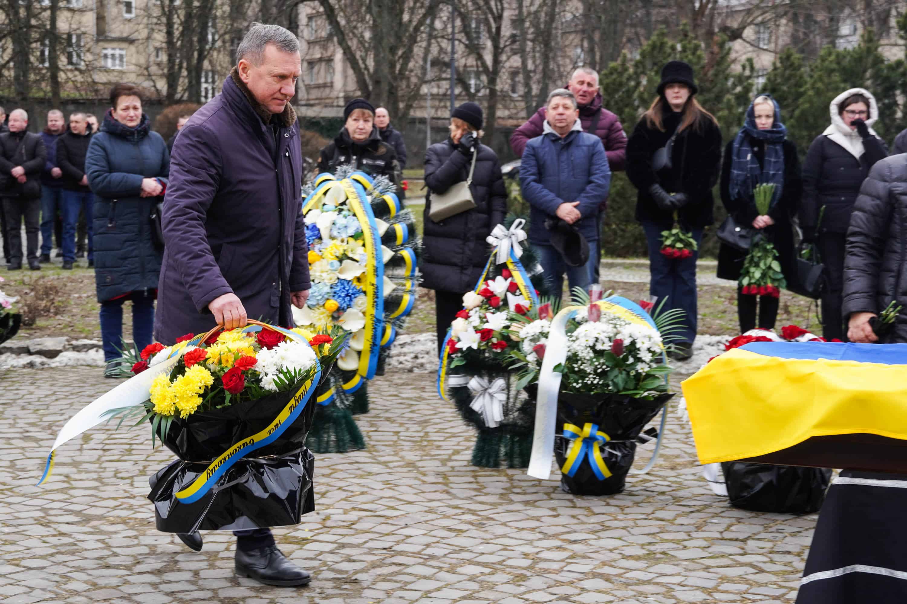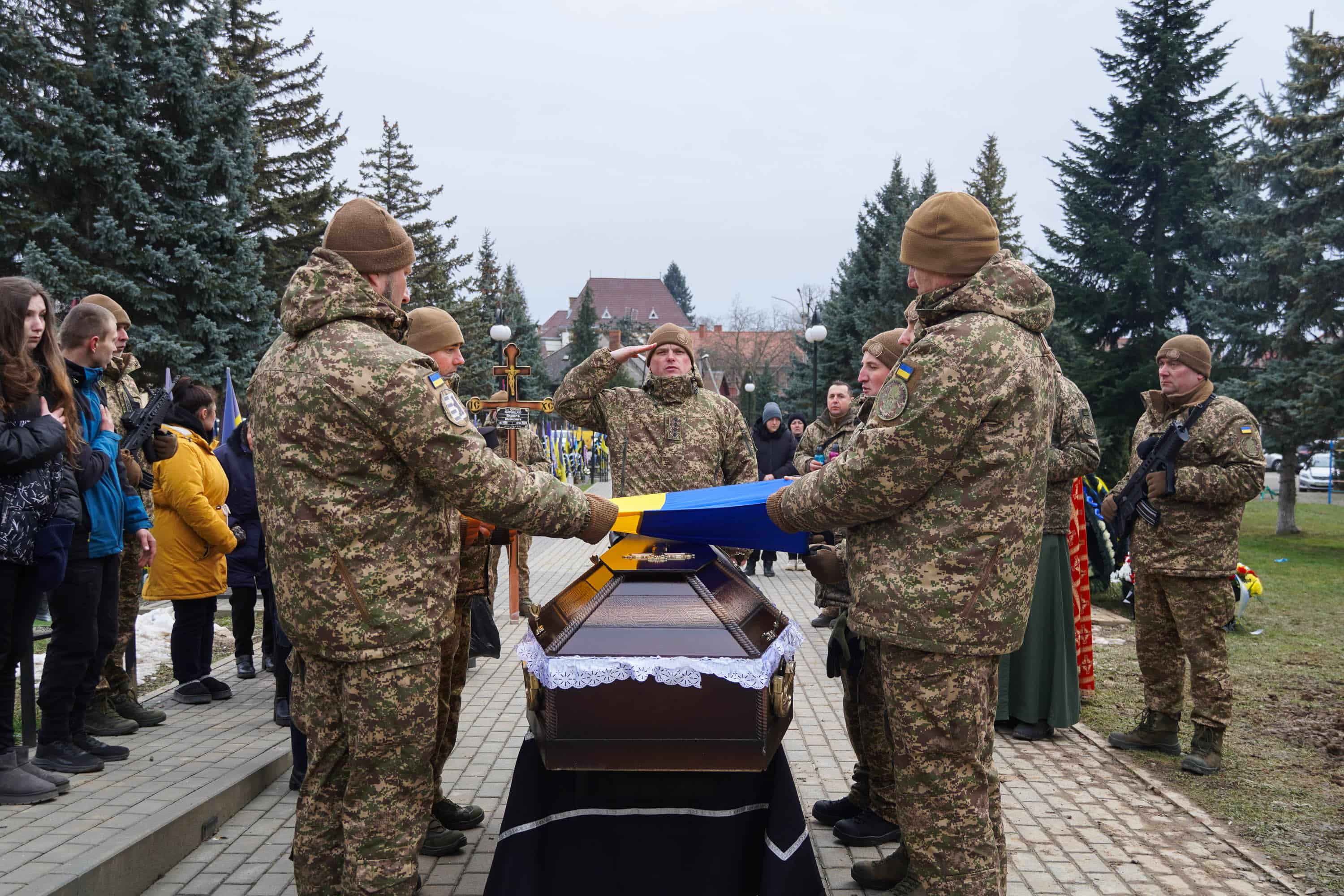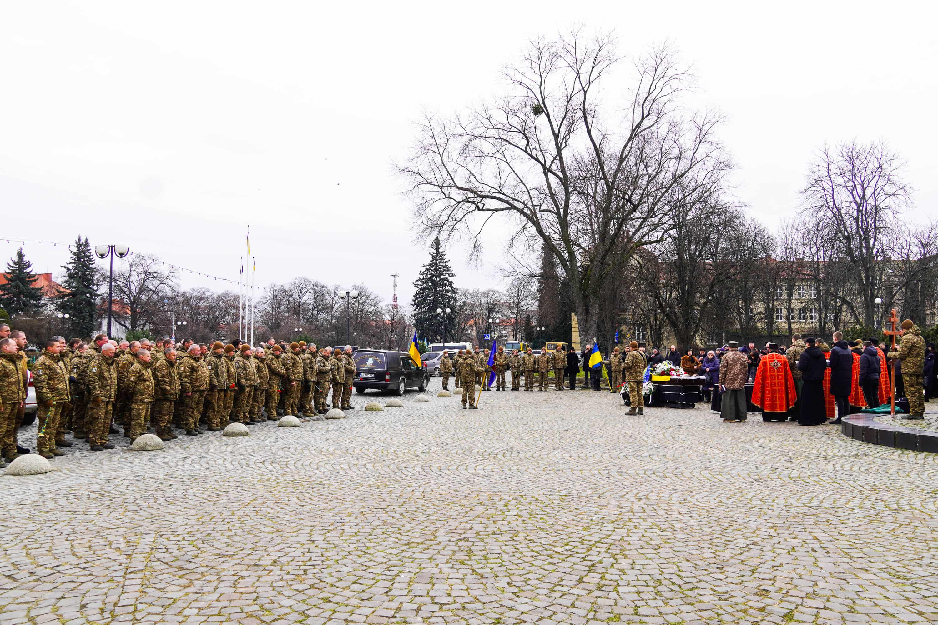 Чин похорону відбувся на площі Народній. Віддати шану полеглому прийшли рідні, друзі, військові, побратими, ужгородці, міський голова Богдан Андріїв.