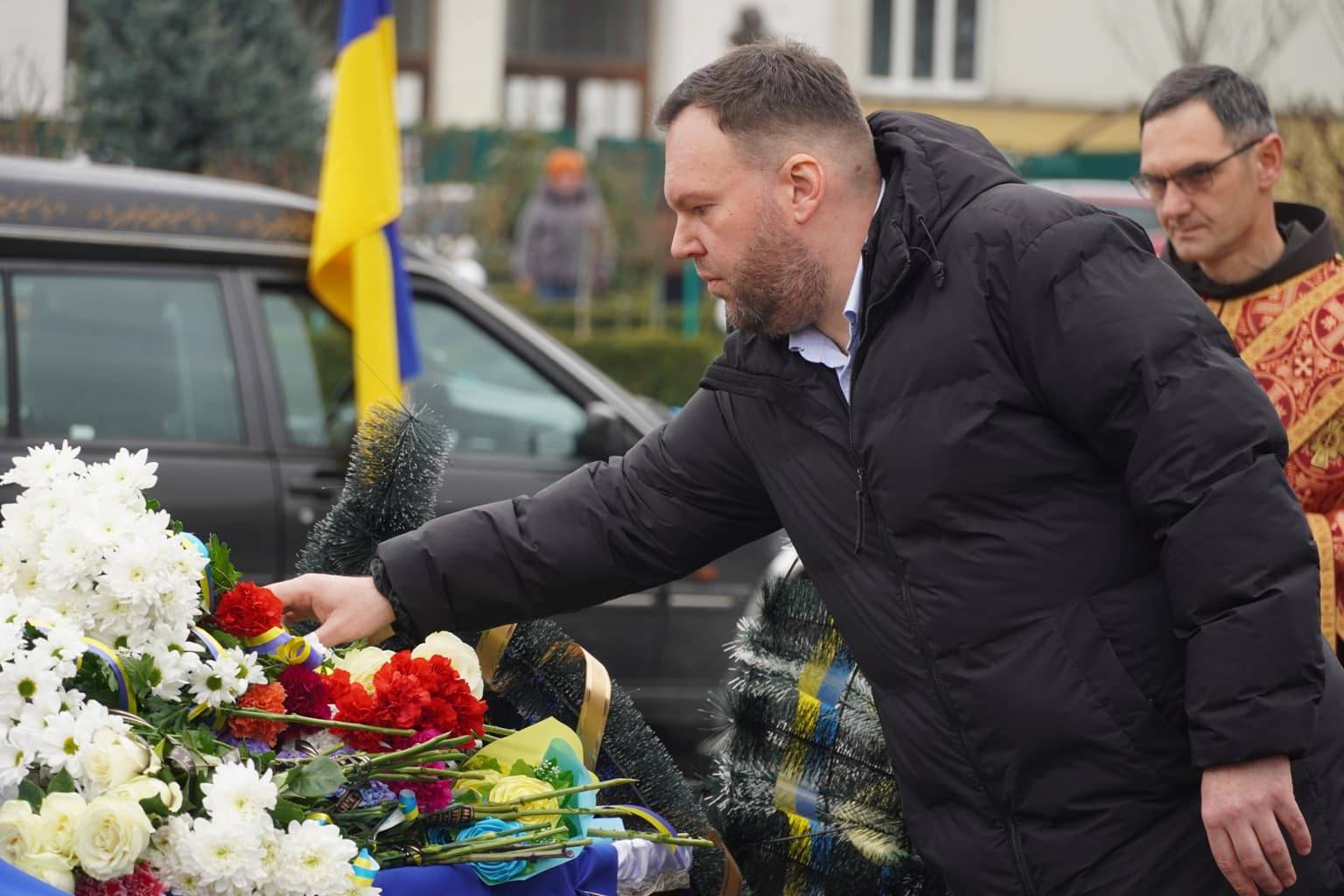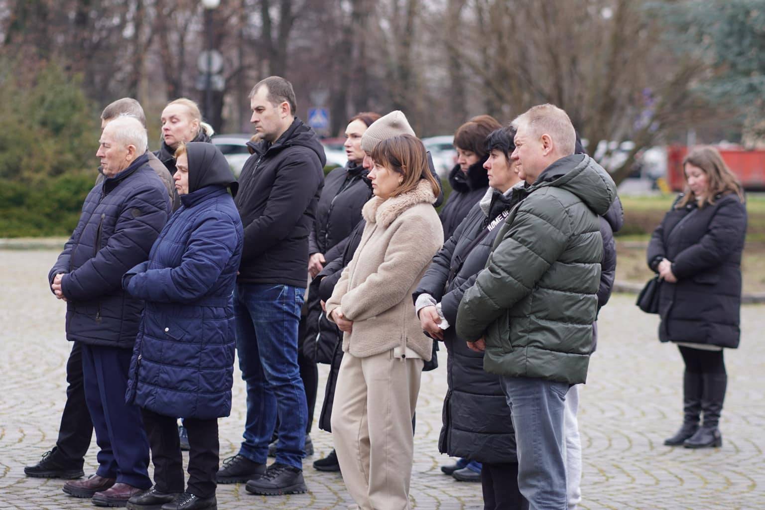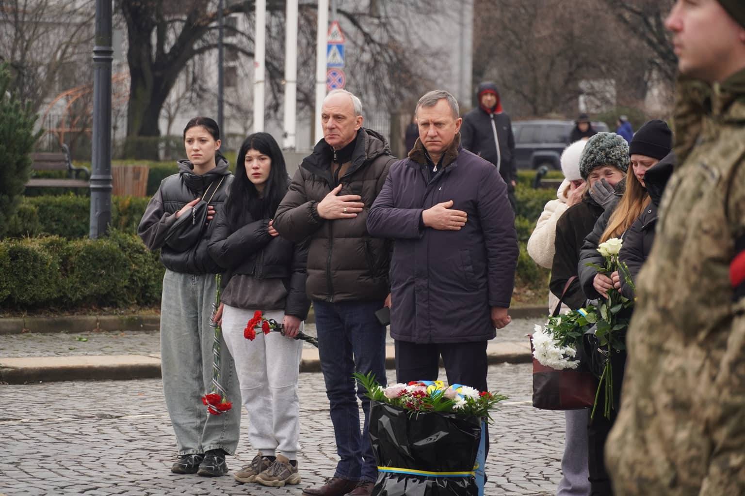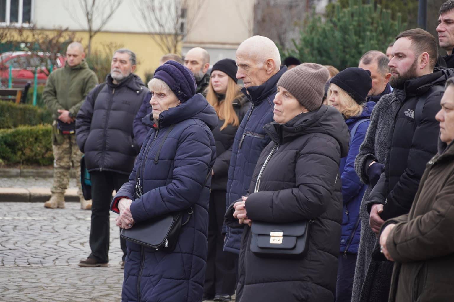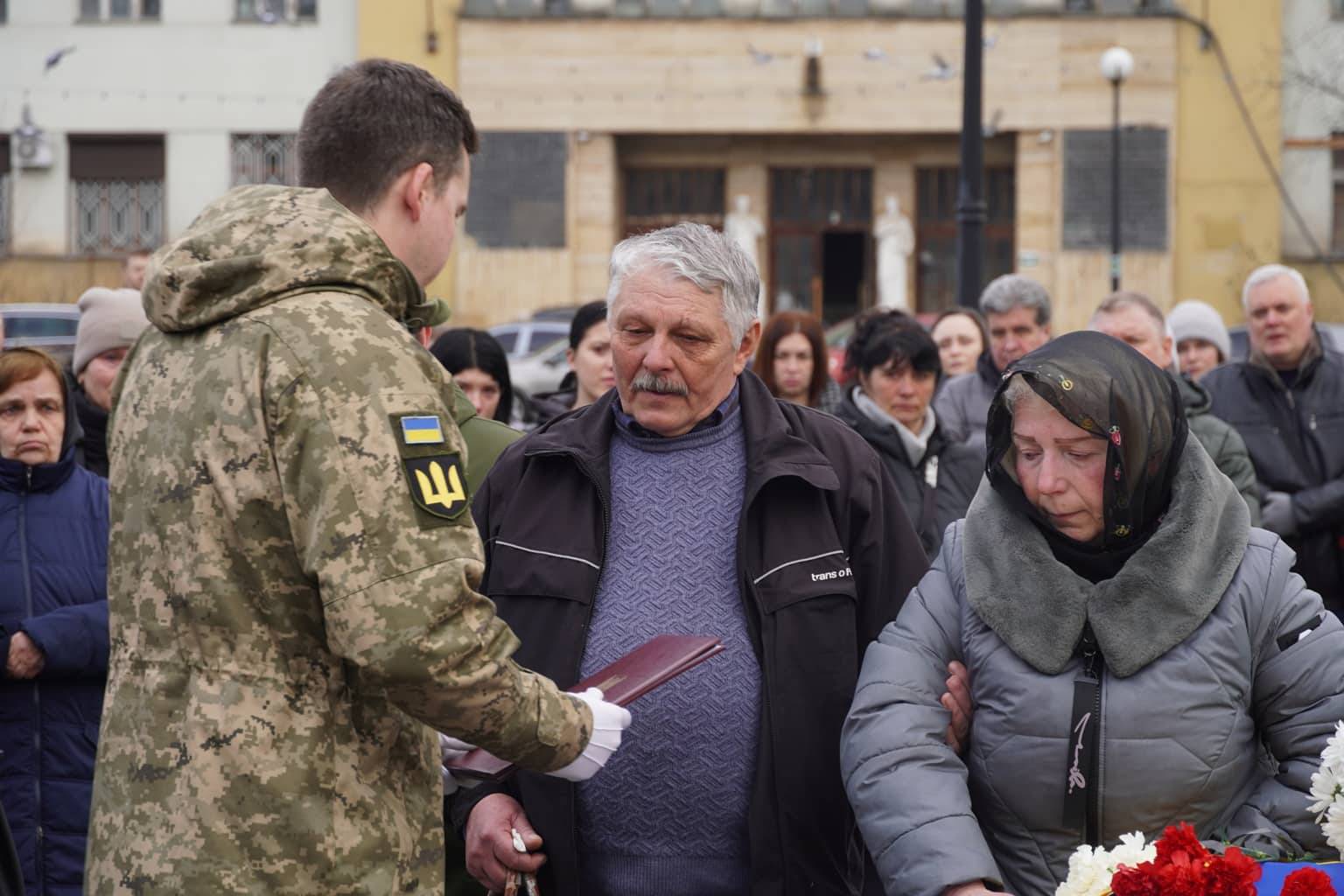 Чин похорону відбувся на площі Народній. Віддати шану військовослужбовцю прийшли рідні, друзі, військові, ужгородці, міський голова Богдан Андріїв.