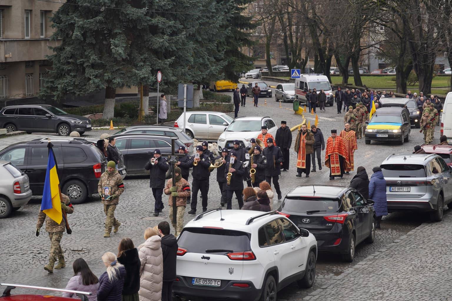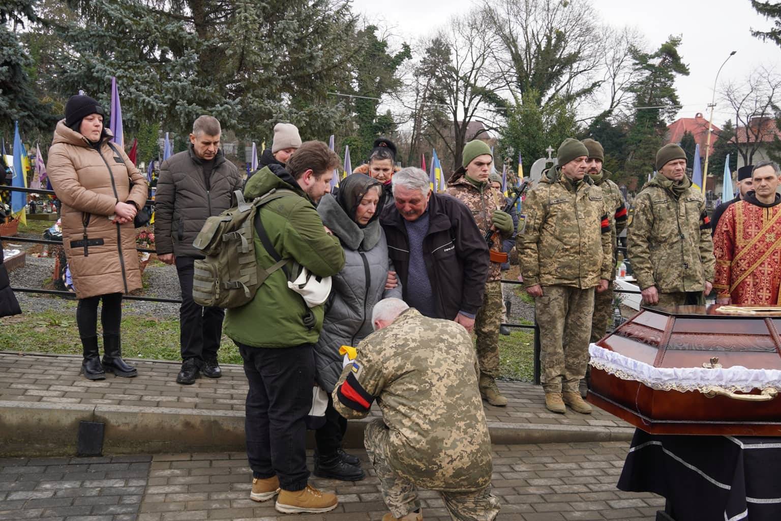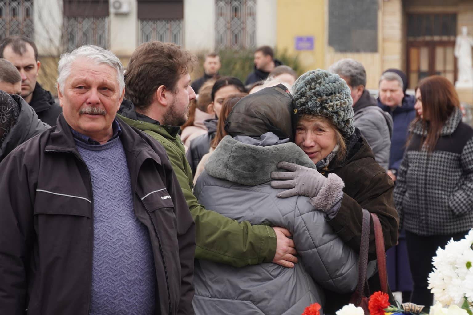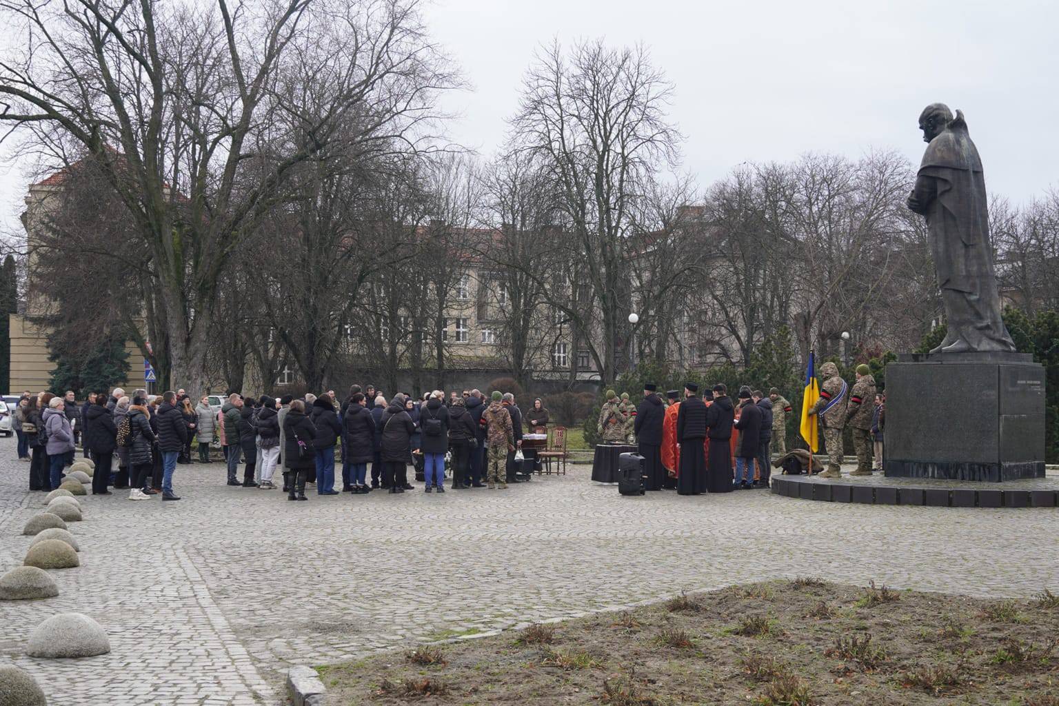 Чин похорону відбувся на площі Народній. Віддати шану військовослужбовцю прийшли рідні, друзі, військові, ужгородці, міський голова Богдан Андріїв.