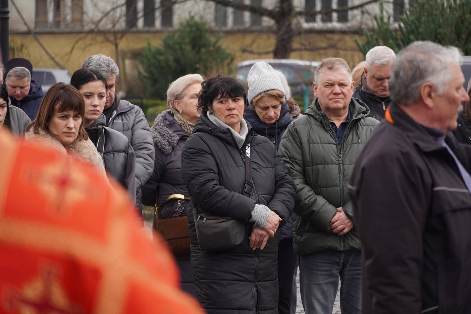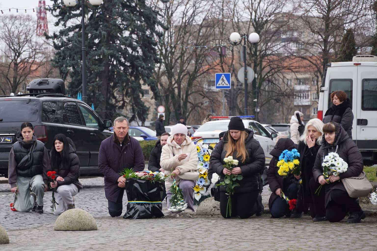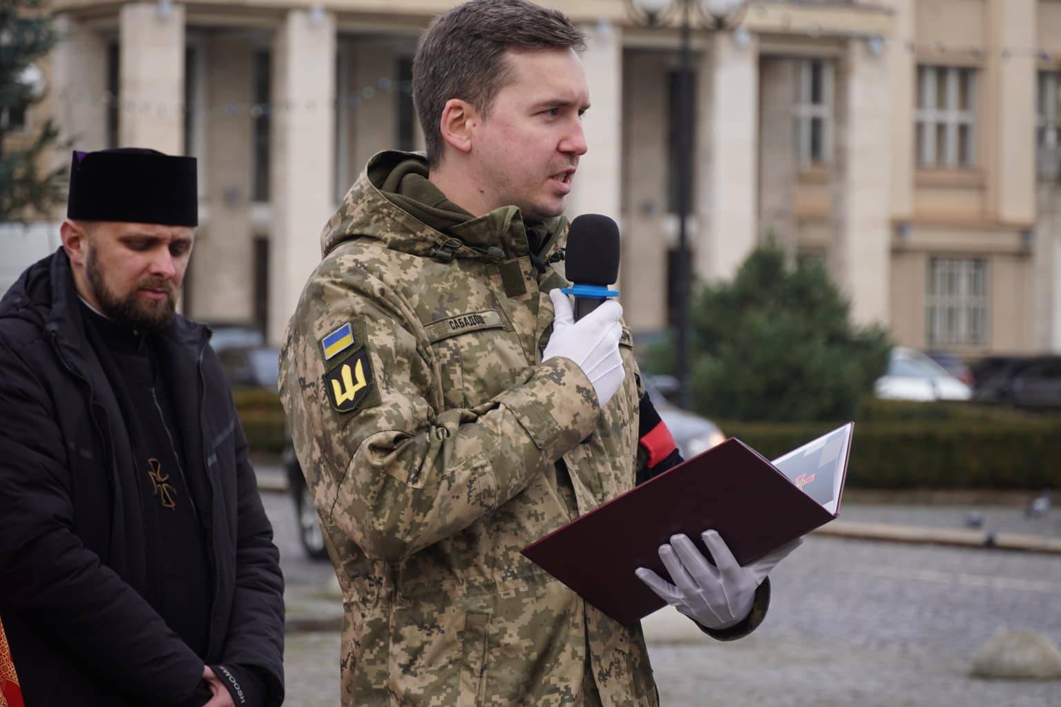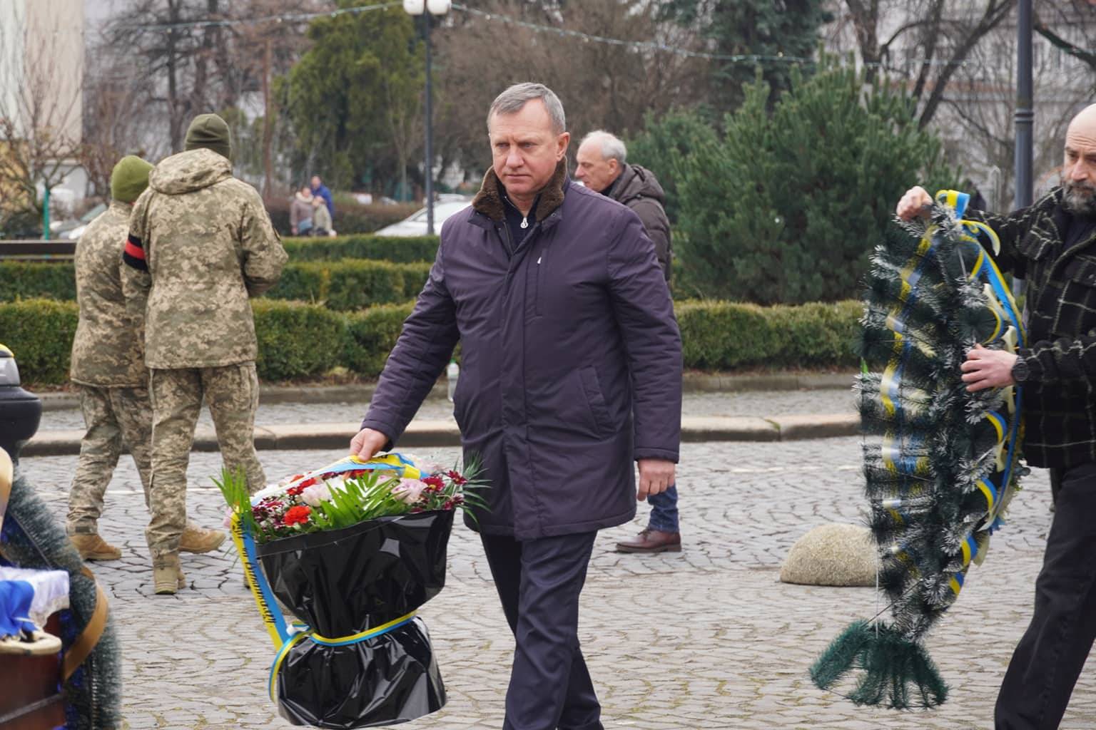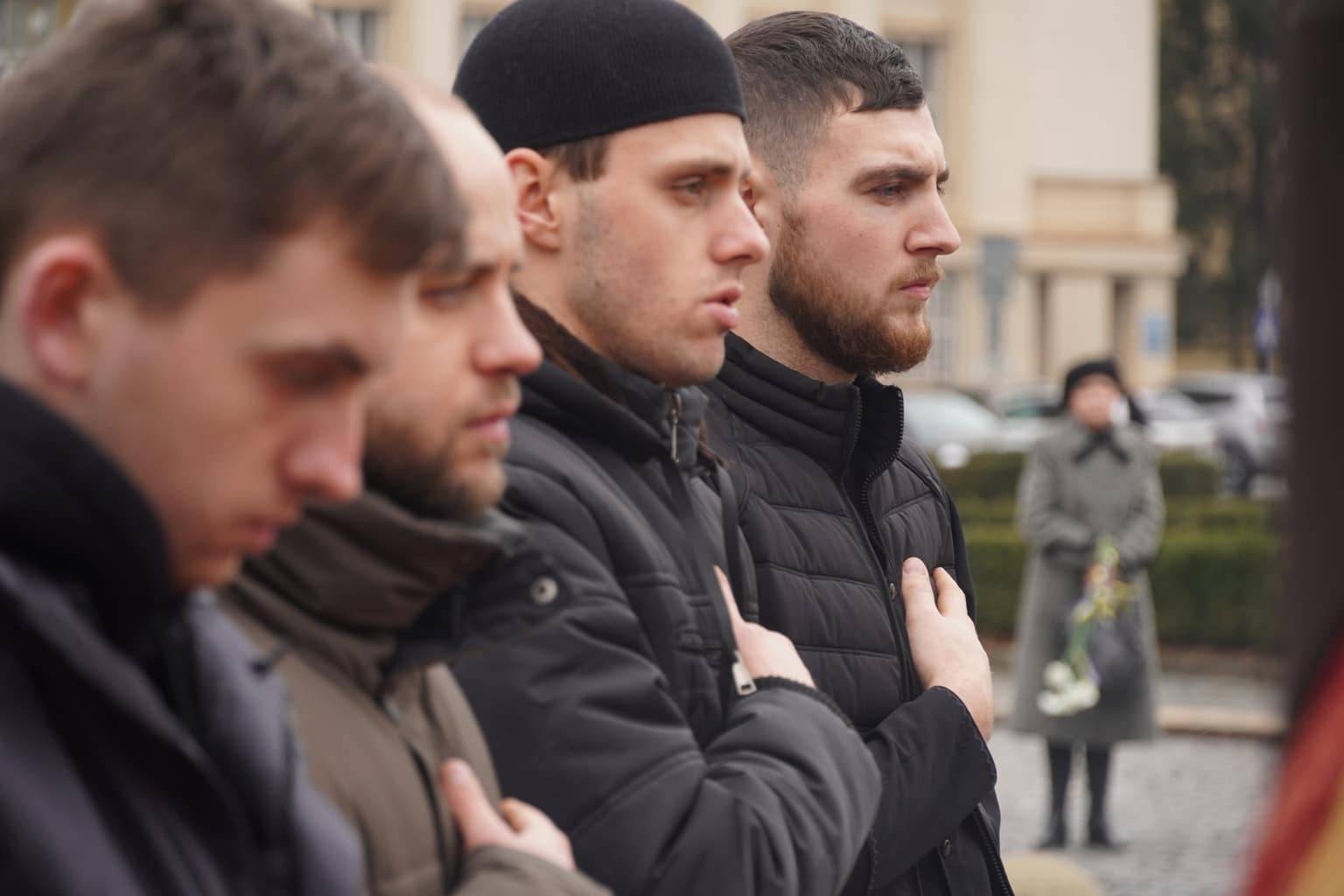 Чин похорону відбувся на площі Народній. Віддати шану військовослужбовцю прийшли рідні, друзі, військові, ужгородці, міський голова Богдан Андріїв.