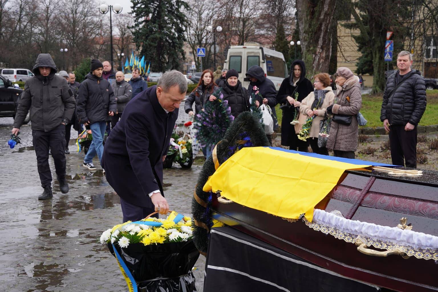 Чин похорону відбувся на площі Народній. Віддати останню шану полеглому прийшли рідні й близькі, військові, мешканці міста, міський голова Ужгорода Богдан Андріїв.