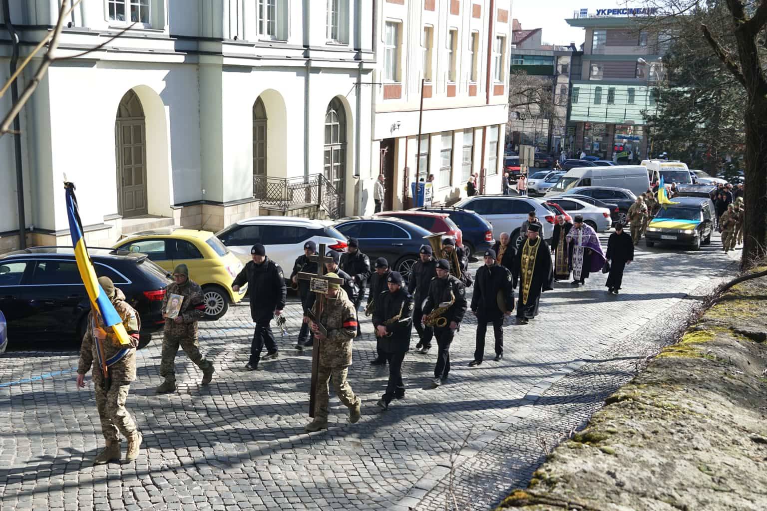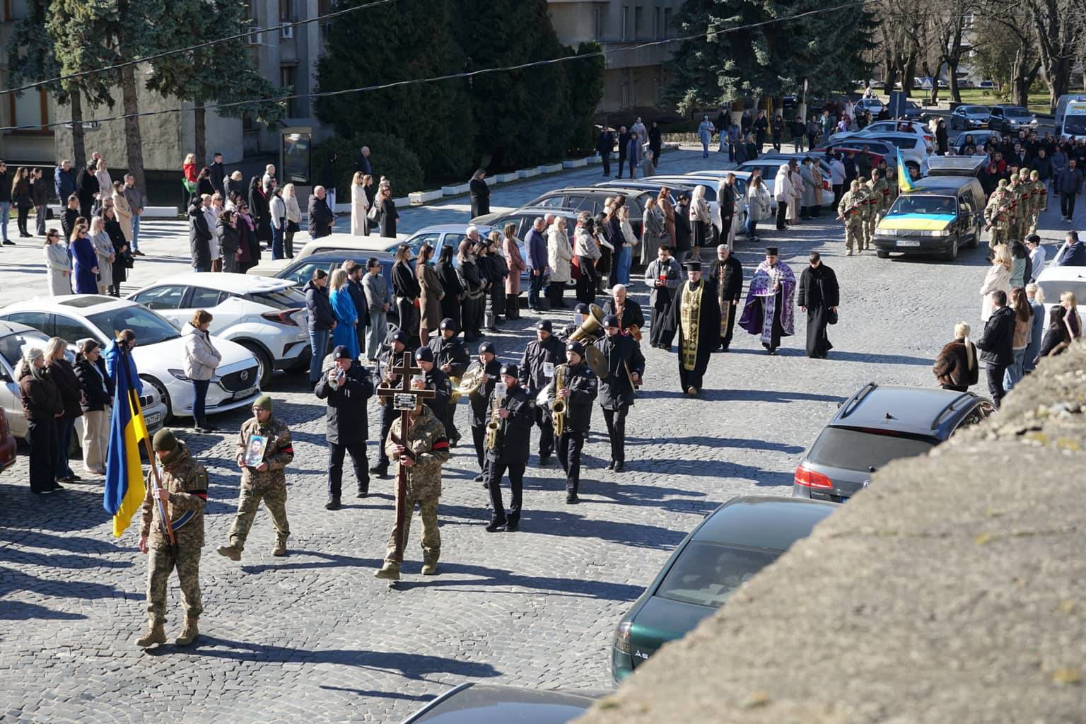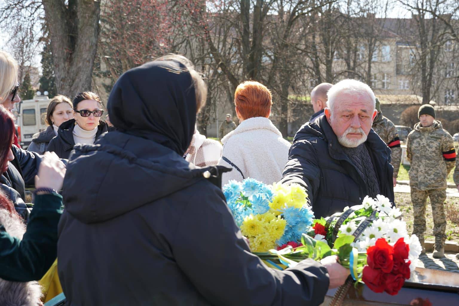 Чин похорону відбувся на площі Народній. Провести воїна в останню путь прийшли міський голова Богдан Андріїв, військові, містяни.