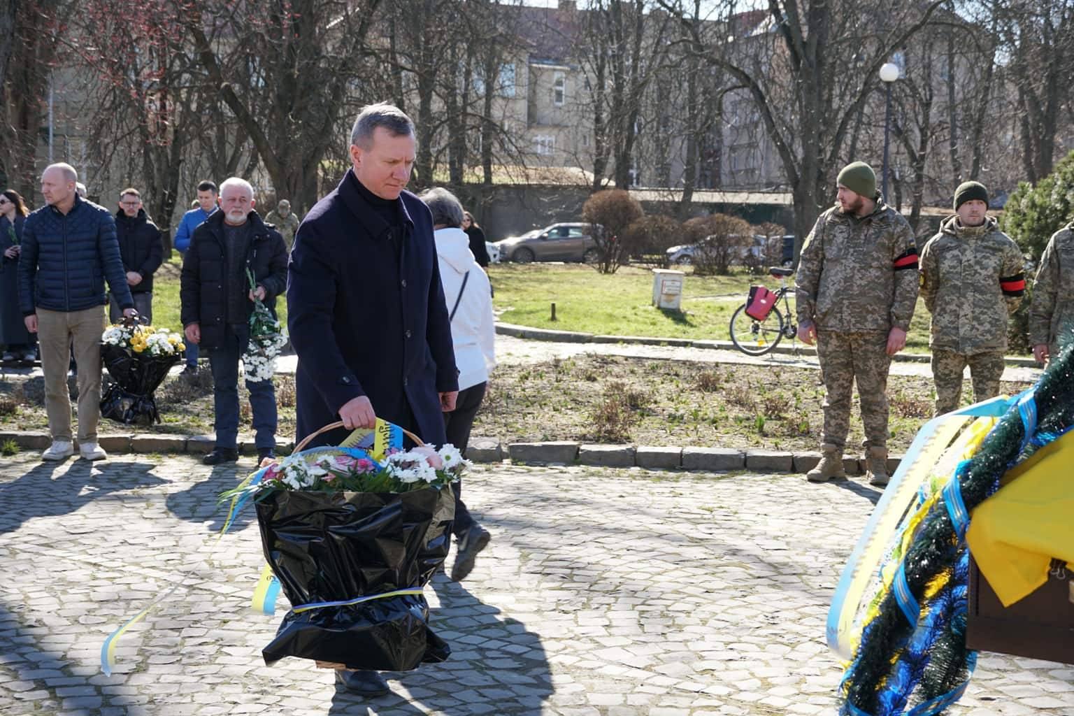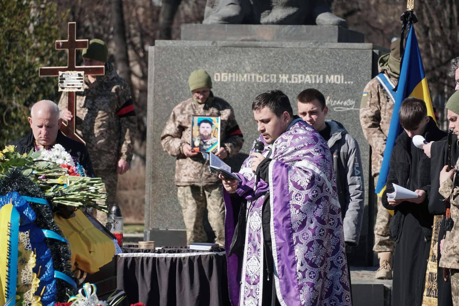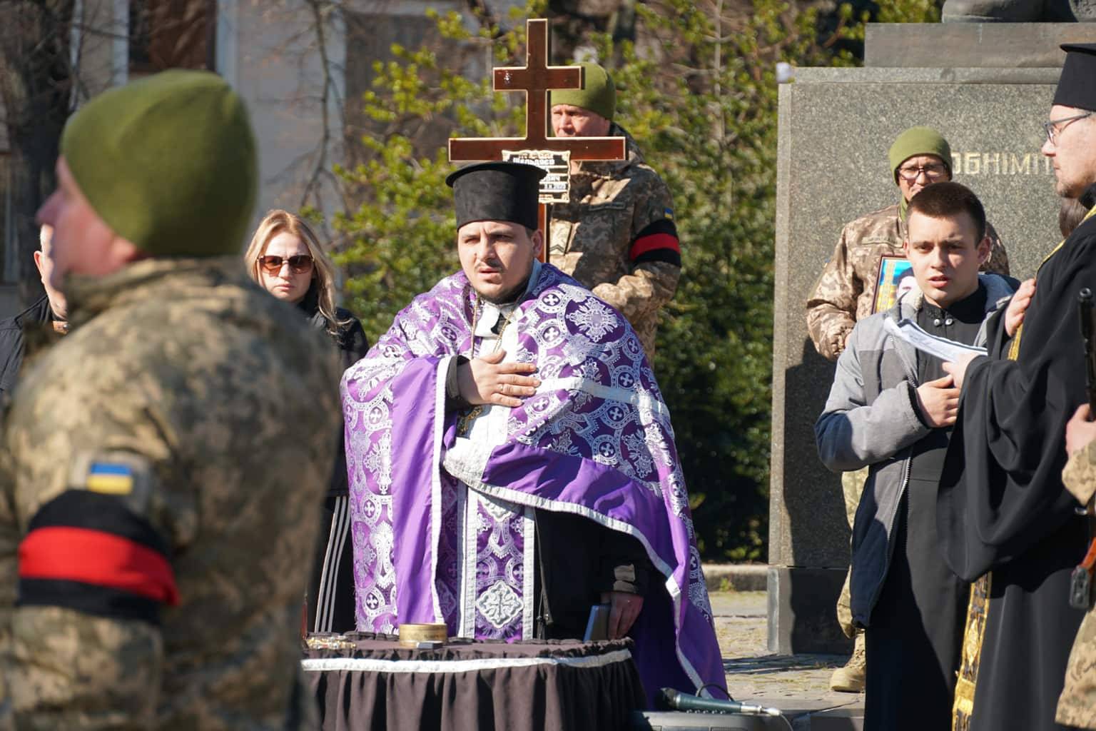 Чин похорону відбувся на площі Народній. Провести воїна в останню путь прийшли міський голова Богдан Андріїв, військові, містяни.