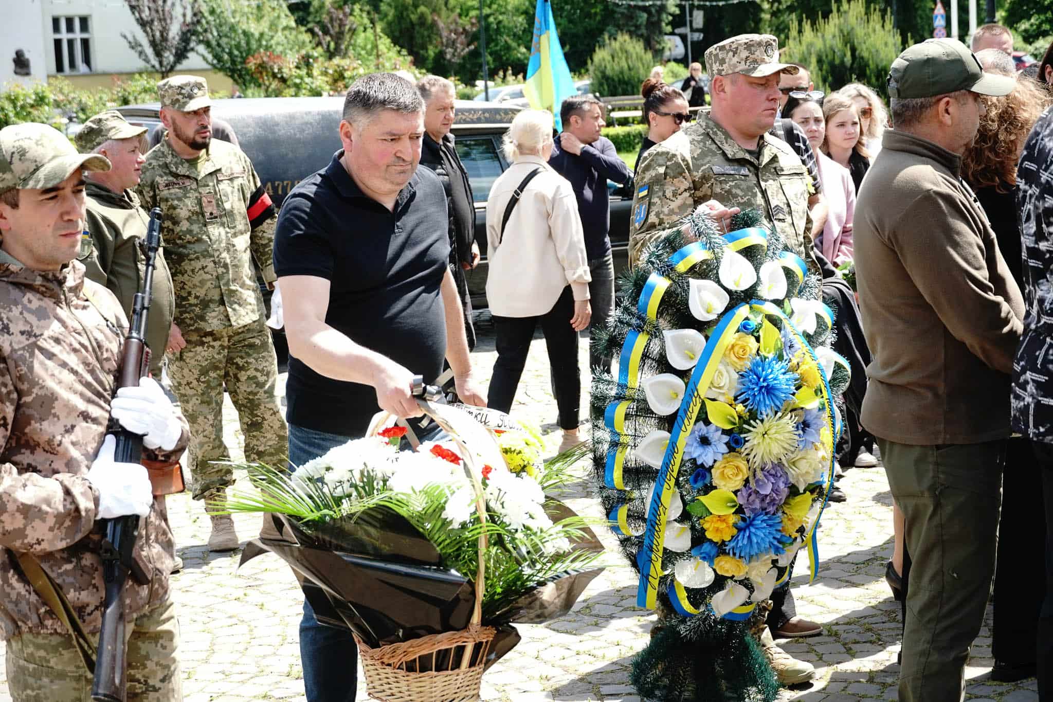 Прощалися із захисником на площі Народній. Віддати шану військовому прийшли рідні та близькі, колеги, міський голова Богдан Андріїв, військові, містяни.