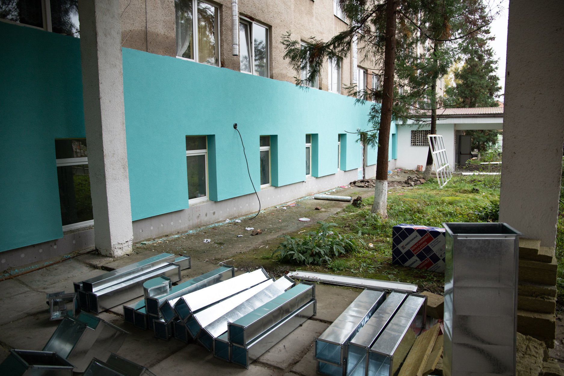Капітальний ремонт з переплануванням приймального відділення Ужгородської центральної міської клінічної лікарні під відділення екстреної (невідкладної) медичної допомоги йде повним ходом, працюють і у вихідні. Роблять перепланування приміщень, встановлюють нову електричну мережу, монтують системи вентиляції та кондиціонування повітря, проводять внутрішні оздоблювальні роботи, оновлюють фасад.