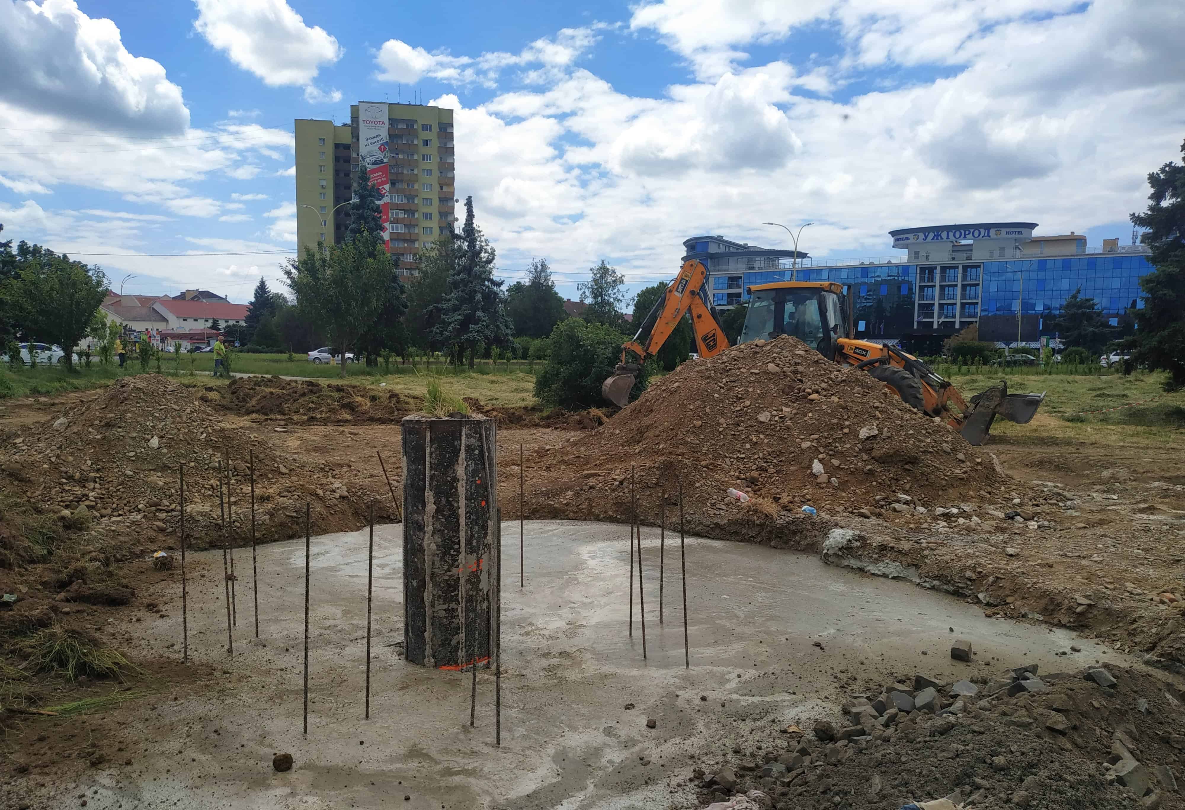 Іван Петрович звернув увагу на виконання робіт у стислі терміни, до 8 серпня повинні встановити флагшток. Наразі вже зробили бетонну основу під фундамент, армують та бетонують фундамент флагштока.