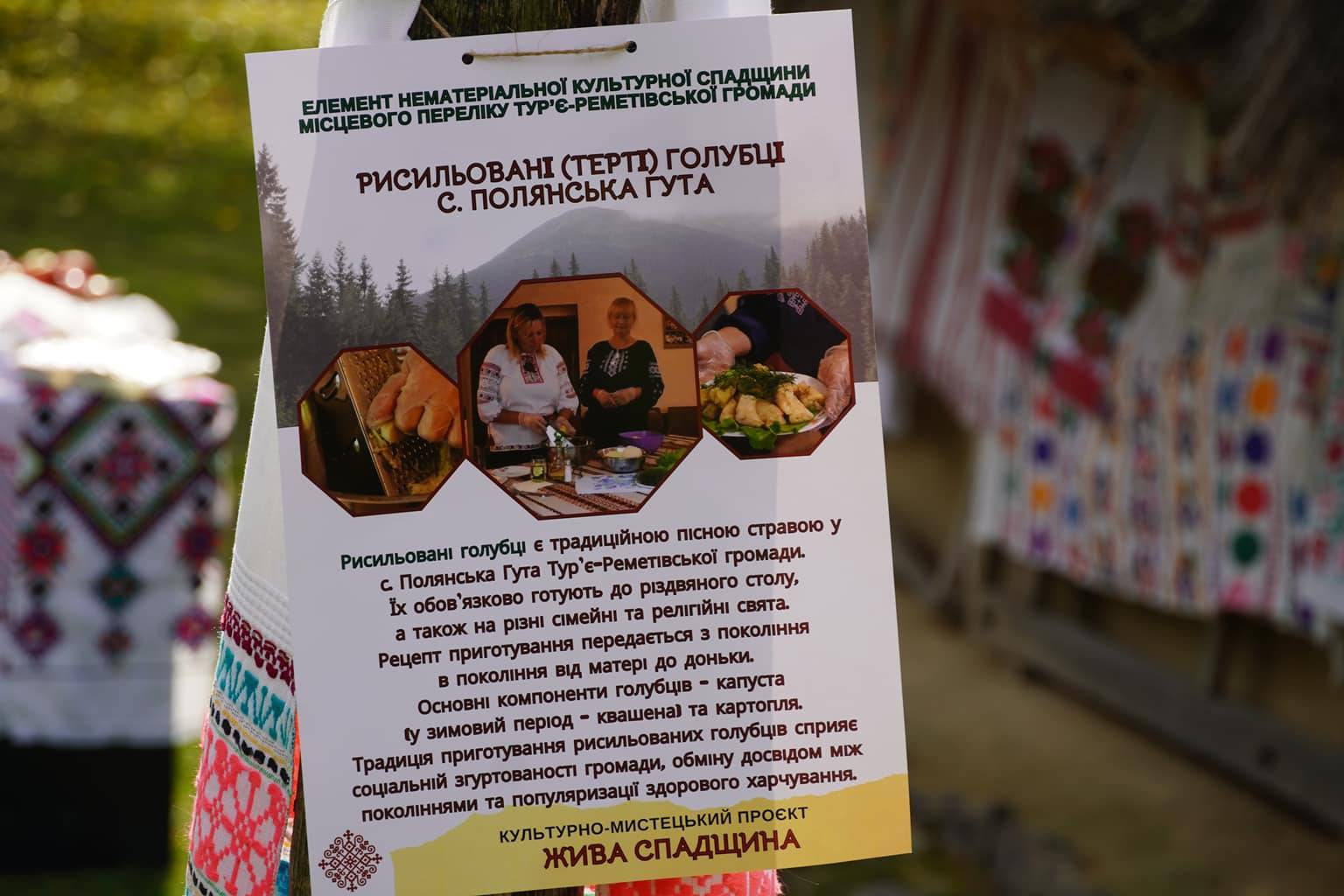 Вперше в межах «Живої спадщини» презентували елементи місцевого значення – переможців обласного конкурсу «Збережемо традиції Карпат»: рисильовані (терті) голубці з с. Полянська Гута, Раковецьку начинку з Білківської громади, традицію кукурудзоплетіння із с. Вишково, весільний обряд «Латкання» з Великоберезнянської громади.