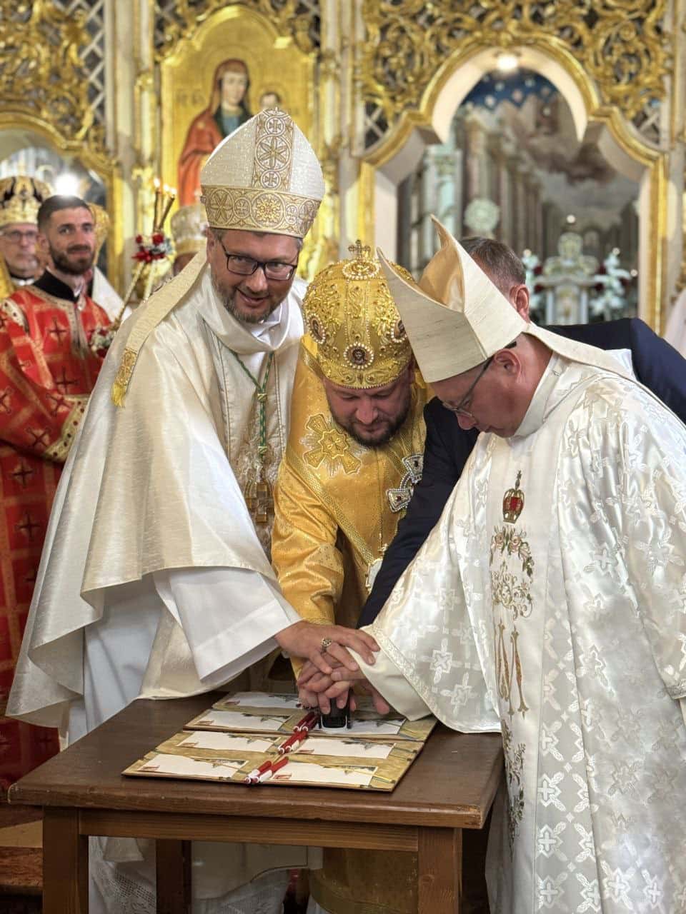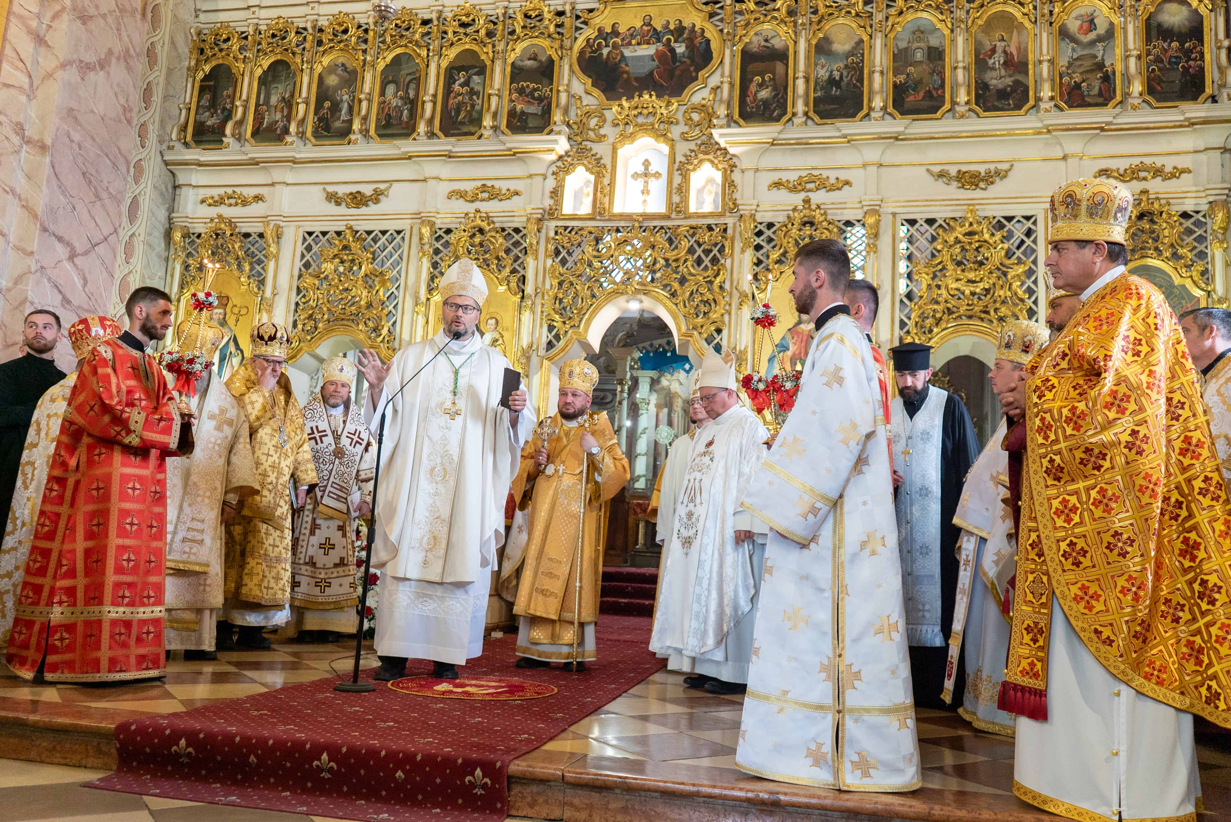 Сьогодні, 28 вересня 2025 року, у серці Ужгорода – греко-католицькому Хрестовоздвиженському кафедральному соборі – панувала особлива атмосфера: тут відбулася Подячна Божественна Літургія, яку очолив преосвященний владика Теодор Мацапула, а гомілію виголосив Його Еміненція кардинал Ґжеґож Рись. На Літургії був присутній апостольський нунцій, Його Екцелленція архиєпископ Вісвальдас Кульбокас, разом з іншими єпископами, духовенством та мирянами.