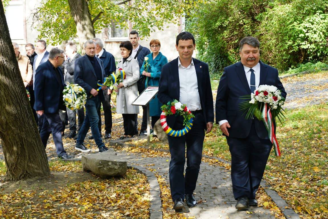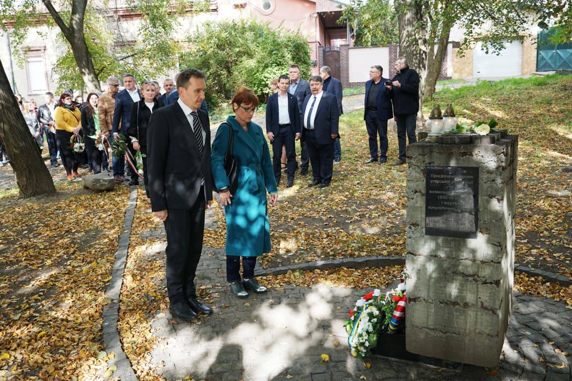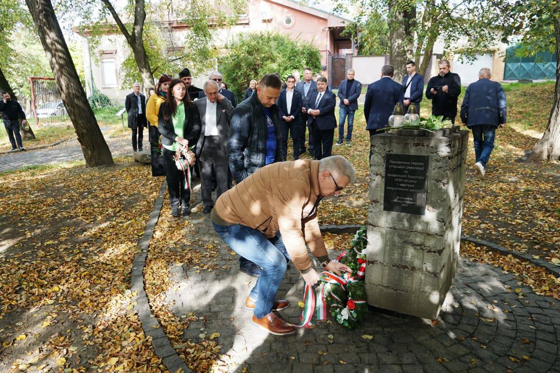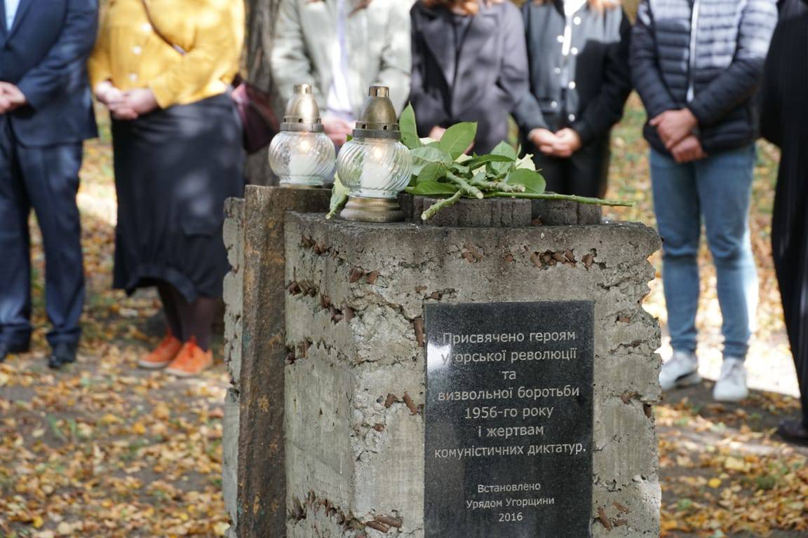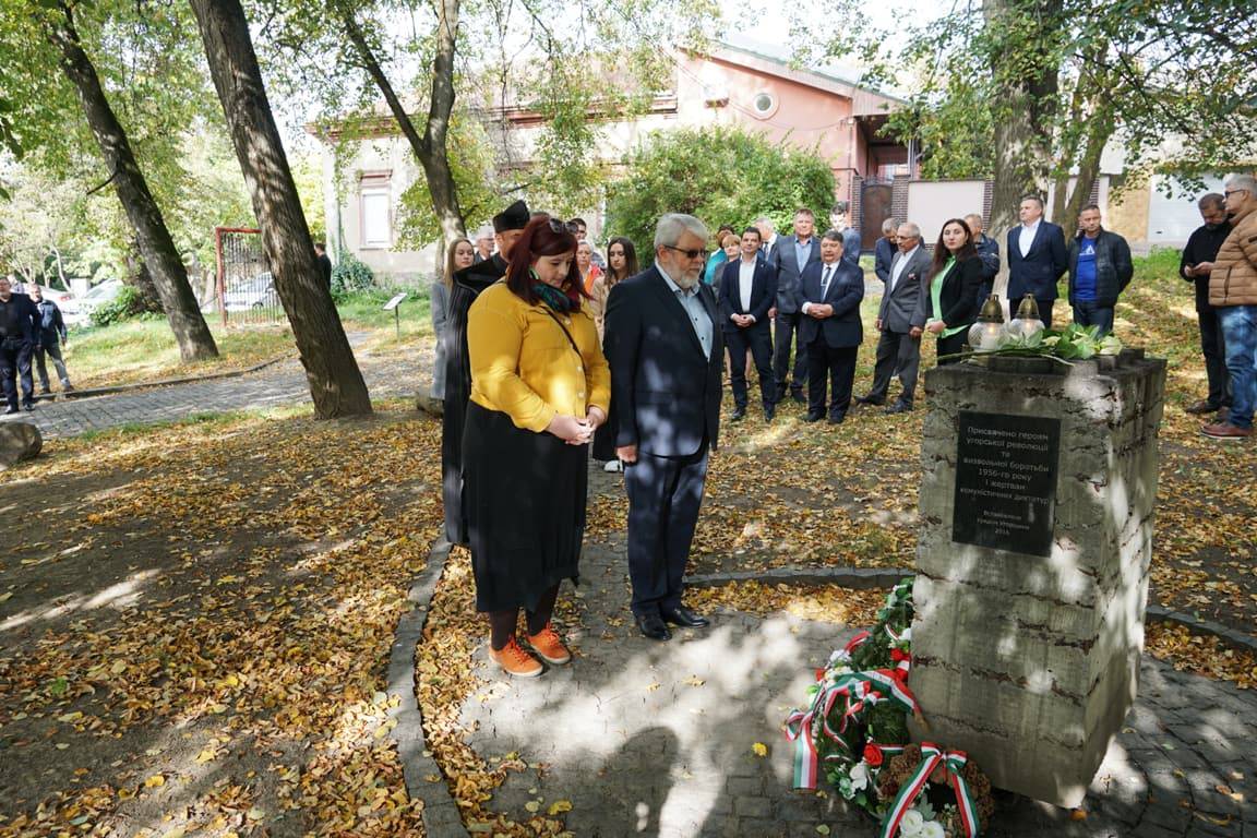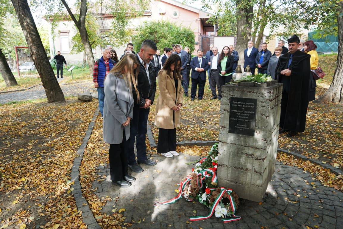 Представники обласної військової адміністрації, обласної та міської рад, Генерального консульства Угорщини в Ужгороді, дипломати, жителі міста вшанували загиблих під час трагічних подій у сусідній країні хвилиною мовчання та покладанням квітів до пам’ятного знаку, присвяченого героям Угорської революції та визвольної боротьби 1956-го року і жертвам комуністичних диктатур, та до меморіальної дошки на стіні Закарпатської установи виконання покарань, що на вулиці Олександра Довженка.