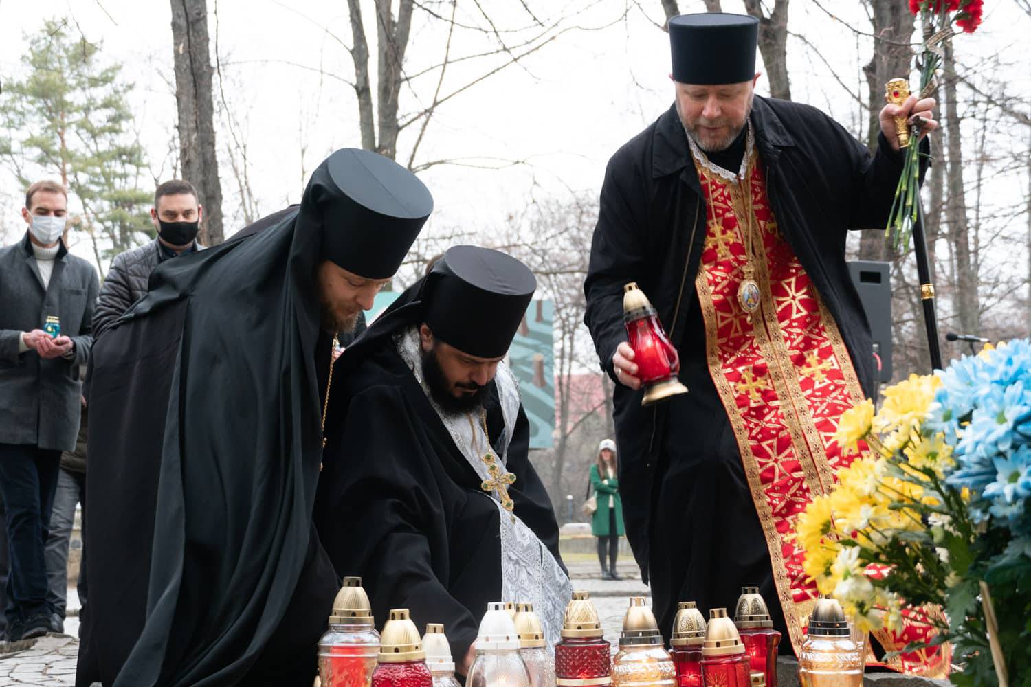 До вшанування подвигу загиблих на Майдані Незалежності сьогодні в Ужгороді долучилися представники влади – області та міста, правоохоронці, священнослужителі, військові, громадськість. До пам'ятного знаку борцям за свободу і незалежність України біля ректорату УжНУ поклали квіти та запалені лампадки.