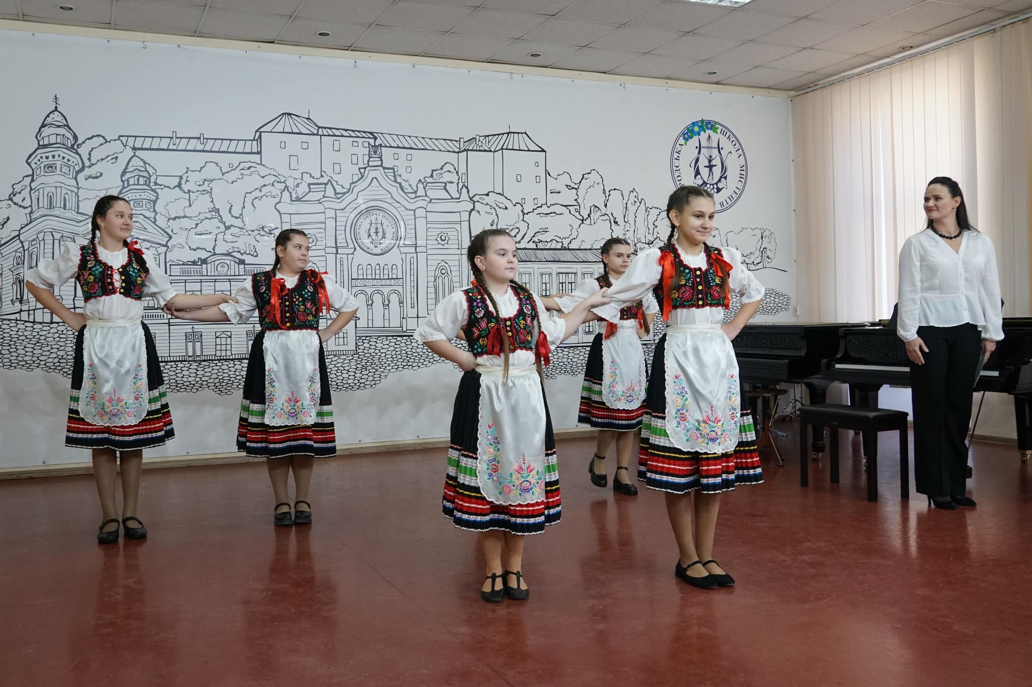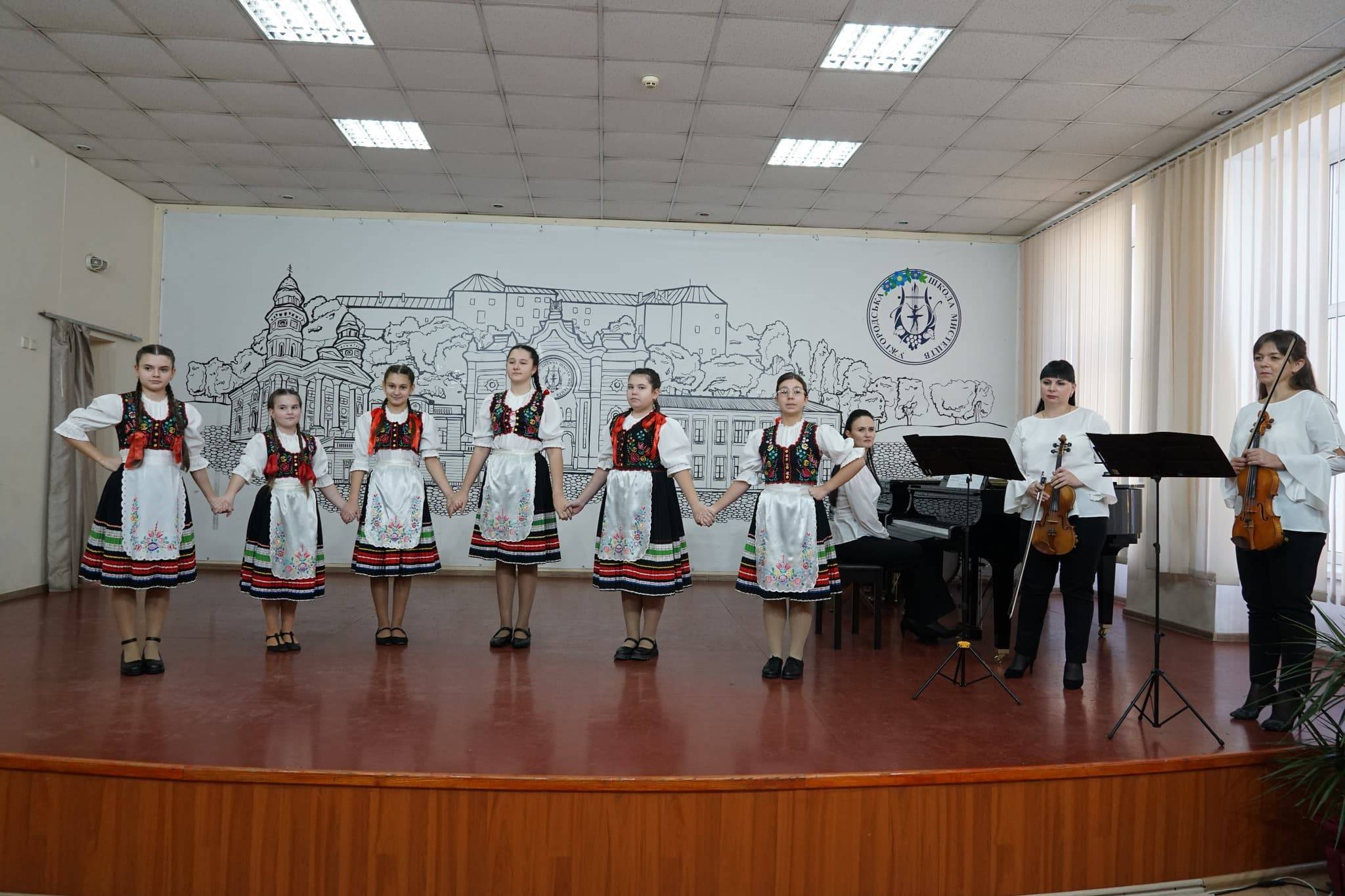 Вихованці школи мистецтв, які вивчають культуру усіх європейських країн і національних спільнот Закарпаття, підготували для гостей вокально-танцювальну програму. Перед делегацією виступили учасники ансамблю угорського танцю «Сіварвань» (керівниця Василина Синичка) та вокальний ансамбль «Естерланц» з вʼязанкою угорських пісень (керівниця Рика Рівіс).