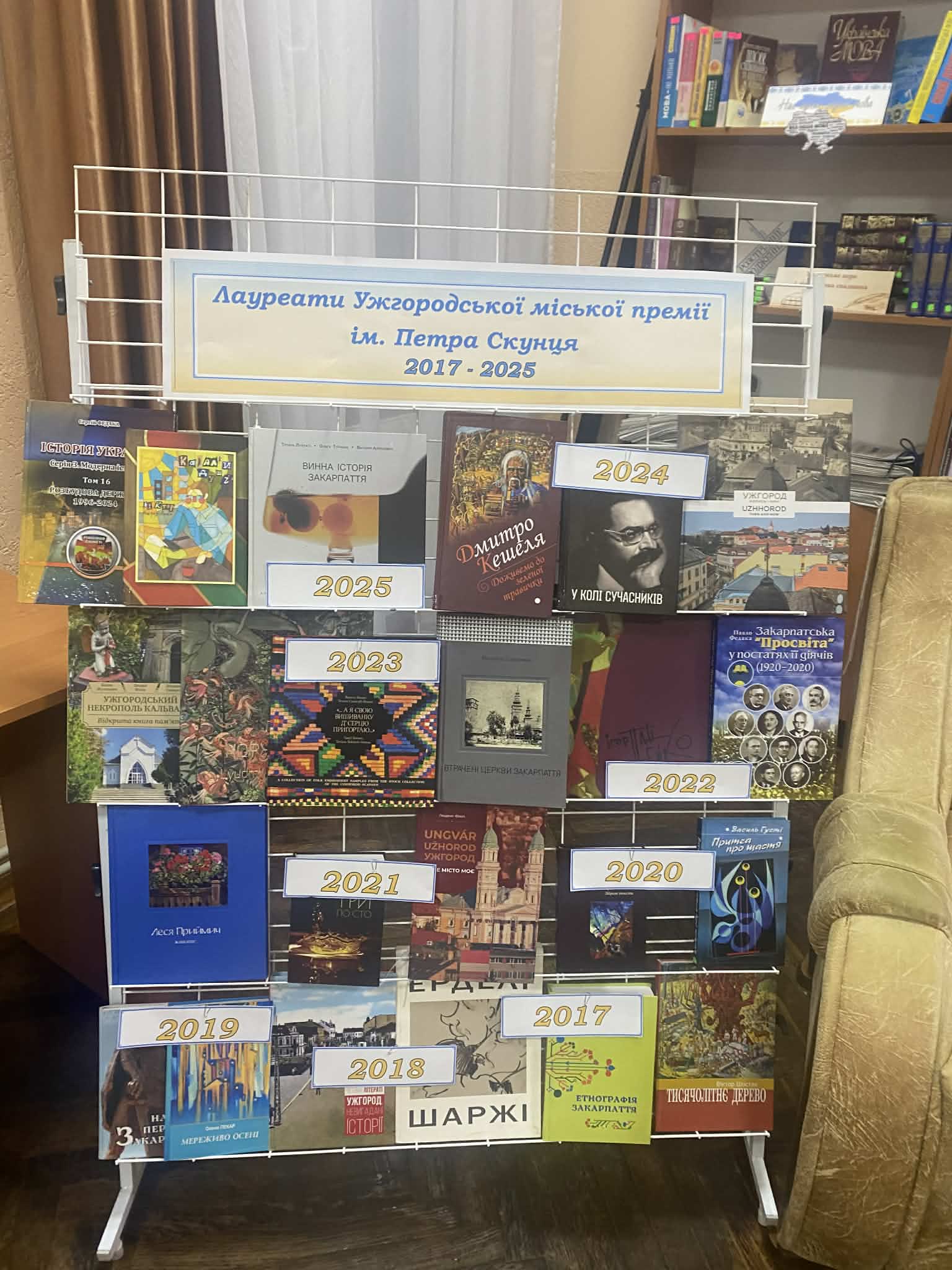 В Ужгородській публічній бібліотеці напередодні зібралися лауреати міської премії імені Петра Скунця двох останніх років для представлення відзначених книжок. Вечір був приурочений Дню української писемності і мови.