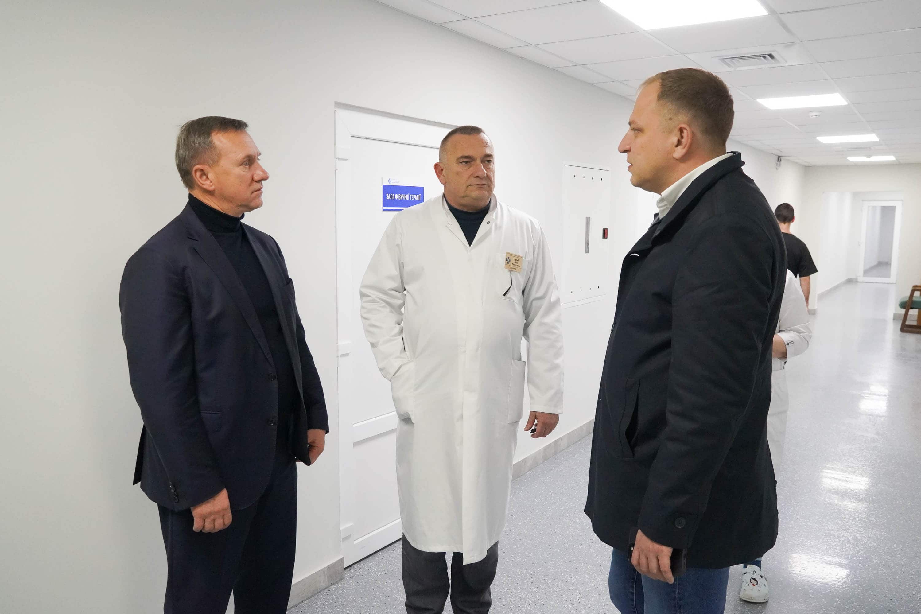 Оглянули реабілітаційне відділення та поспілкувалися з пацієнтами міський голова Богдан Андріїв та заступник міського голови Іван Завидняк.
