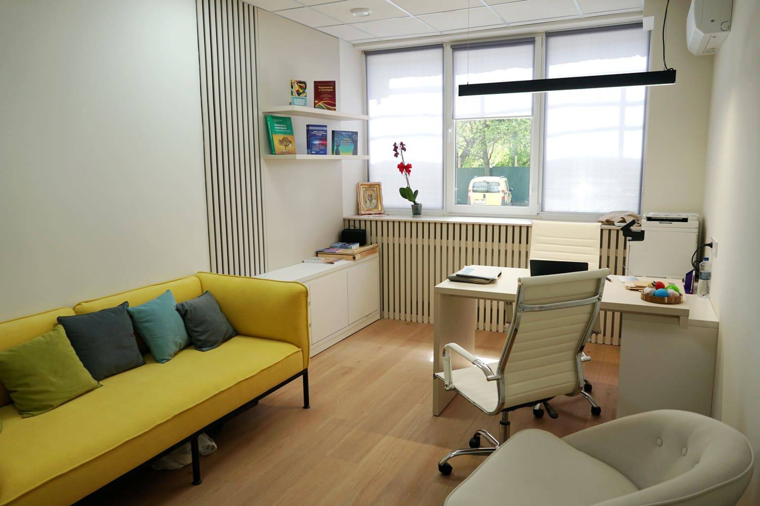 Тут облаштовано кабінети для індивідуальної та сімейної терапії, простір для групових занять, денний стаціонар, маніпуляційний кабінет, рецепцію із зоною очікування, кімнату для персоналу та інклюзивні санвузли.