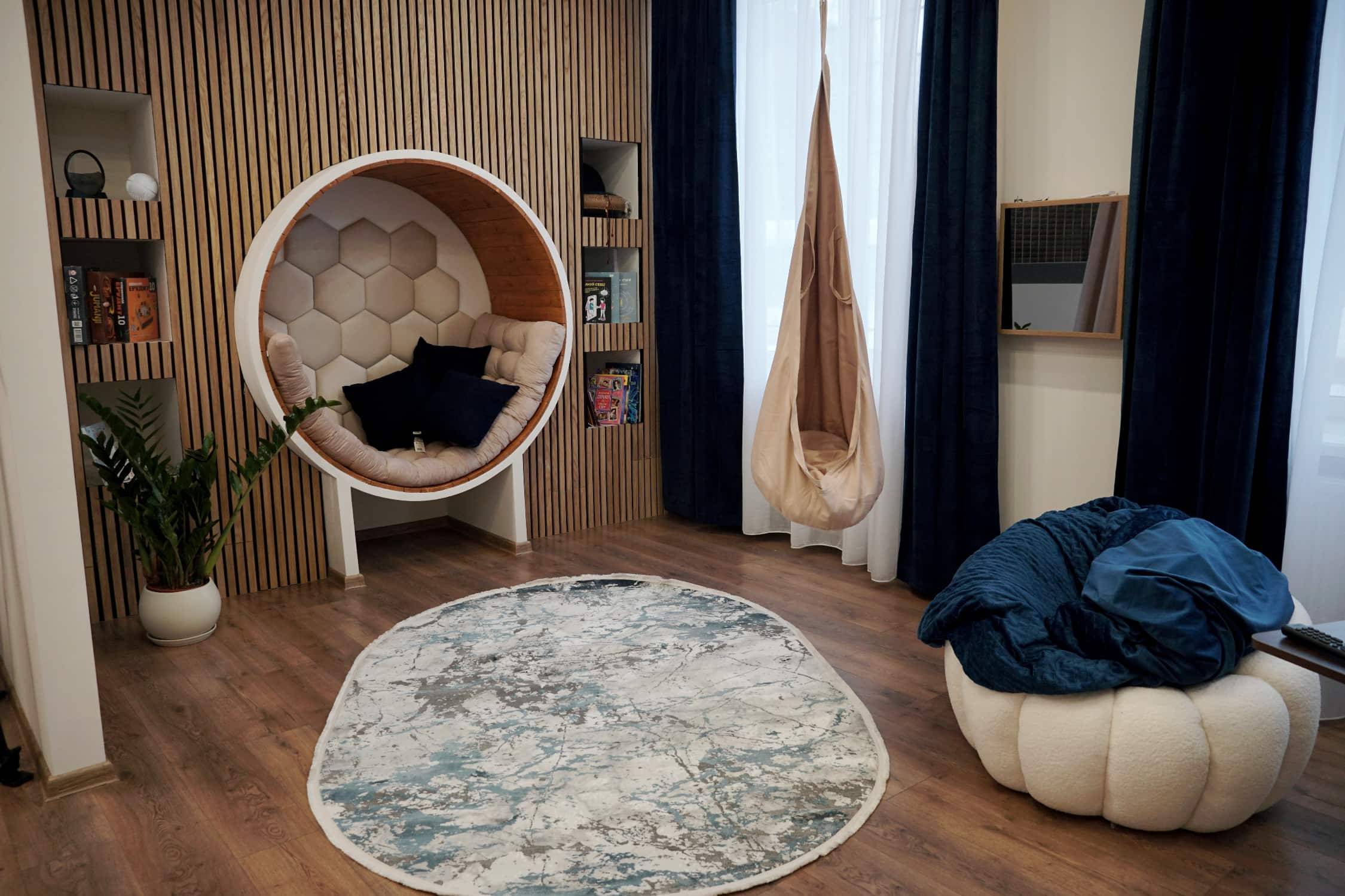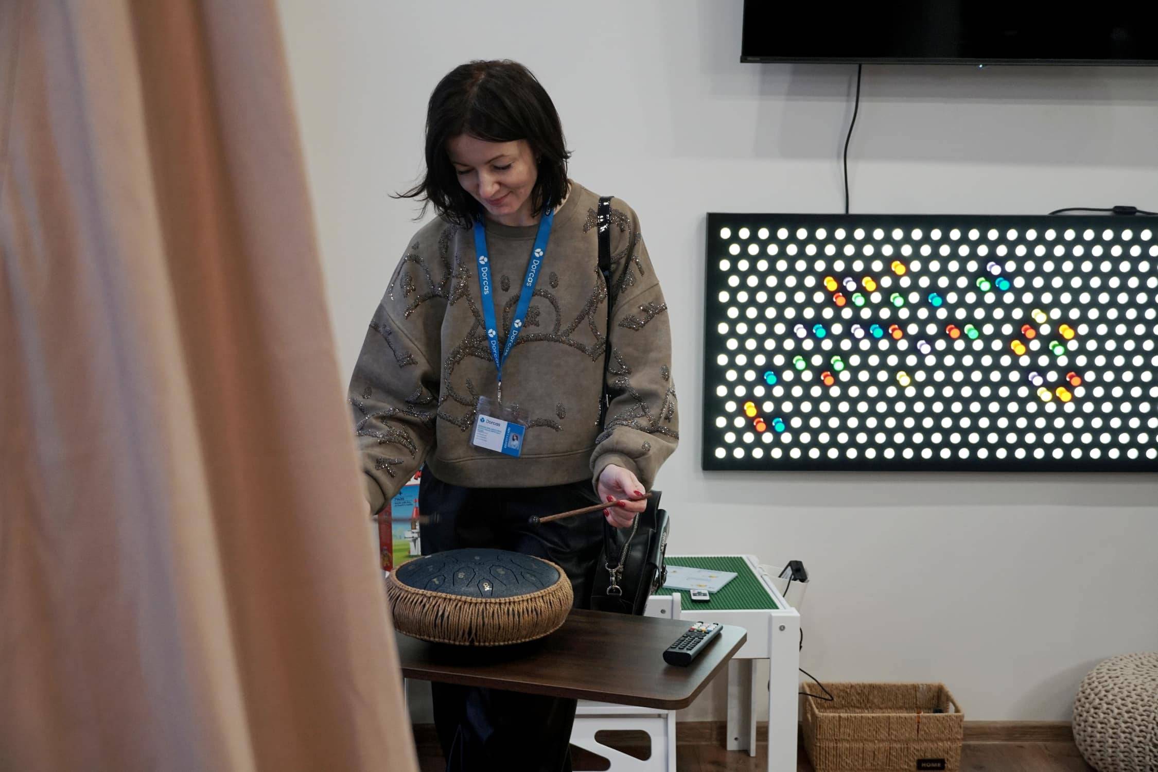 Благодійники відремонтували приміщення площею 34 м², встановили в ньому спеціальні меблі та різноманітне обладнання – сенсорні панелі, музичні інструменти й світлові елементи. Завдяки цьому і діти, і дорослі можуть у зручний для себе спосіб позбутися стресу і втоми.