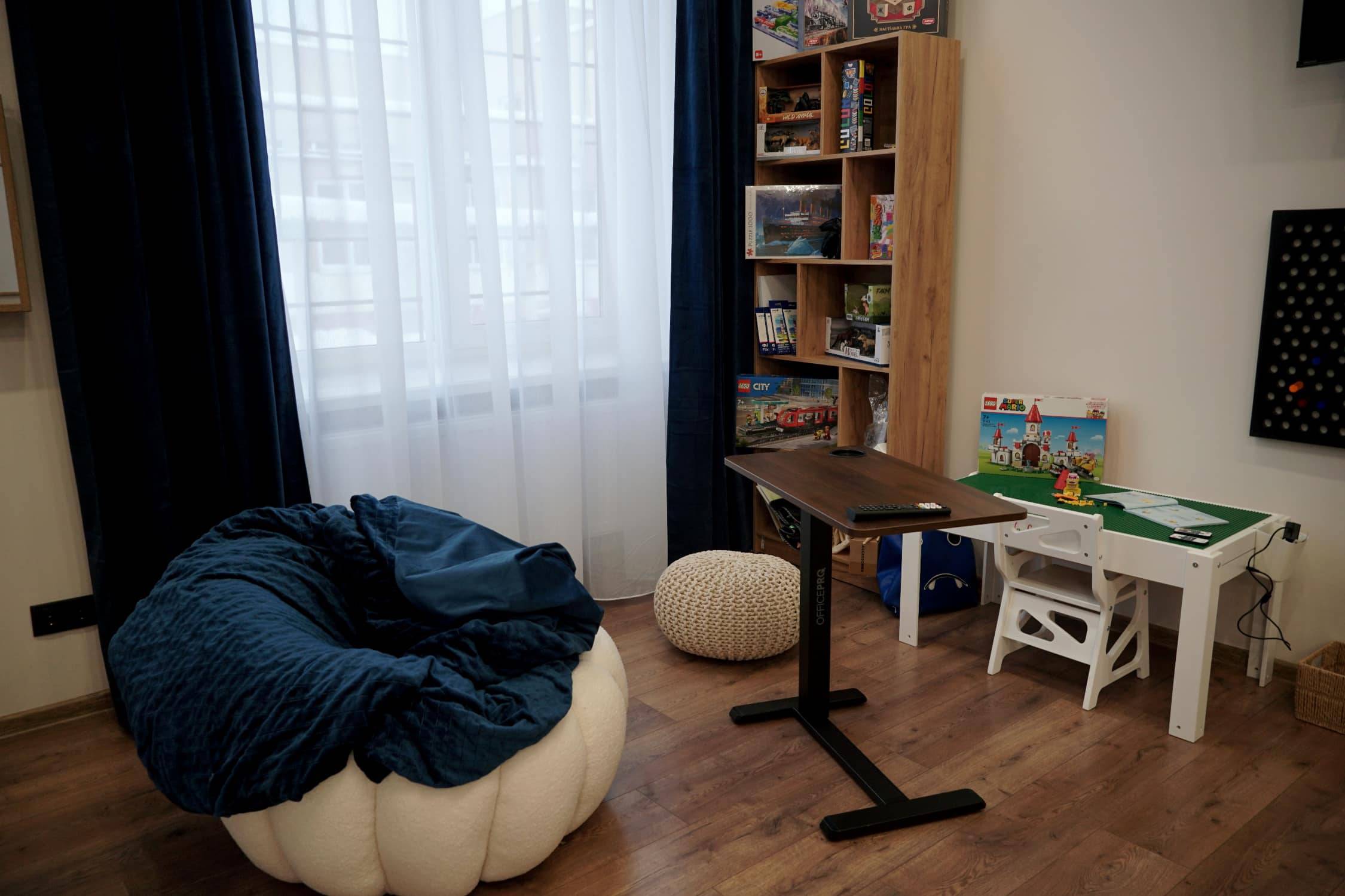 Зона активного розвантаження (Resource Zone) – м’які модулі, важка ковдра, сенсорні доріжки. Особливо важлива для дітей із гіперактивністю або порушеннями моторики, адже допомагає зняти фізичну напругу й краще відчути власне тіло.